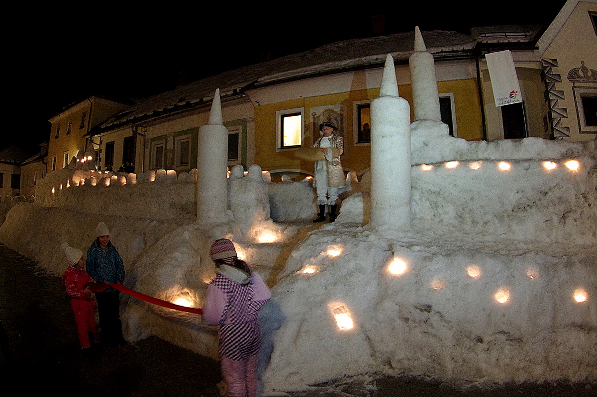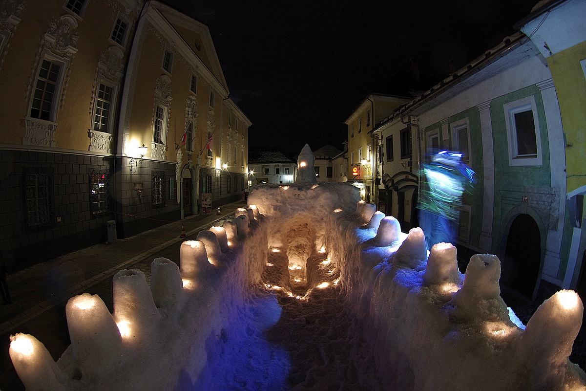 The snow in Radovljica was put to good use last week when, for the second year in succession, a snow castle was built in the old town centre. Locals were invited to come along and help build the castle so it really was a ‘team-town’ effort. Just take a look at these photos, more of which of these and others can be seen on my Pinterest page (http://www.pinterest.com/adeleinslovenia/), to see the results of the work, which was especially impressive when illuminated at night, thanks to the teams at ‘Playful Architecture’ and the ‘Centre for Architecture Slovenia’.