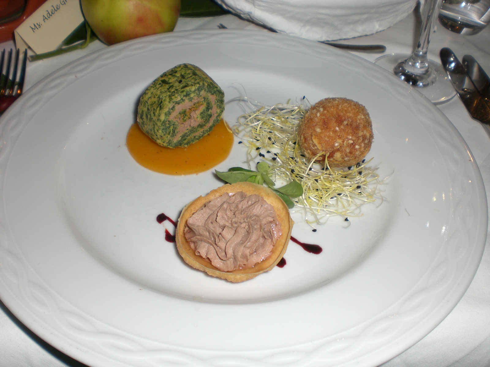 We began we a dish which included a spinach roulade, bear pate with pine tree syrup, beetroot and alfafa sprouts, created by Gostišče Tulipan in Lesce.