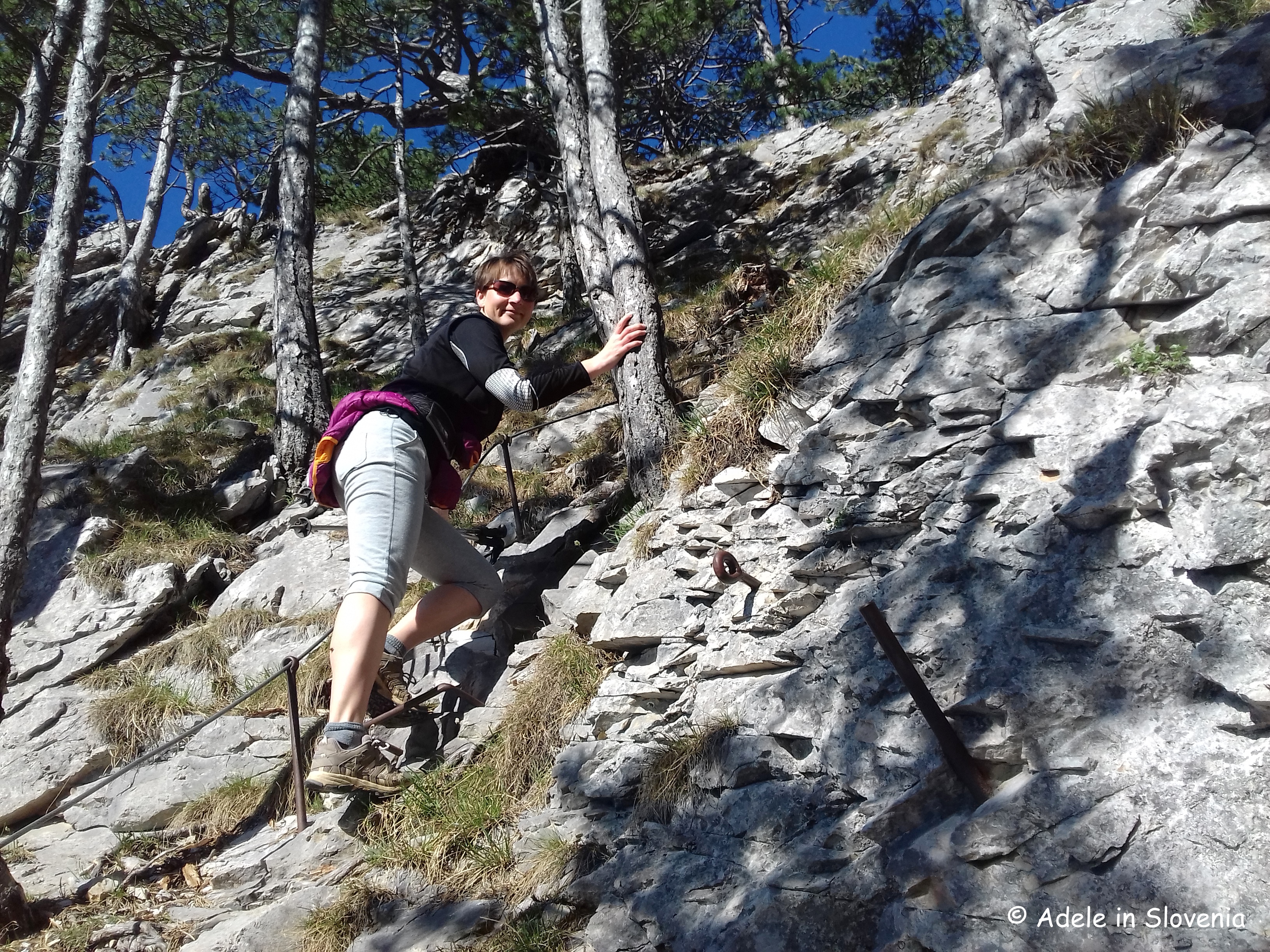 I chose the harder path up and the easier path down. The path up, though not technically difficult, does require sturdy footwear, a steady hand, concentration and no fear of heights as it leads directly up the rock face – but it is well-equipped with steel cable and rungs. For those not so keen on such ascents, or those with small children, take the slightly longer and easier path to the right. Whichever way you reach Ajdna, you will be richly rewarded for your efforts!