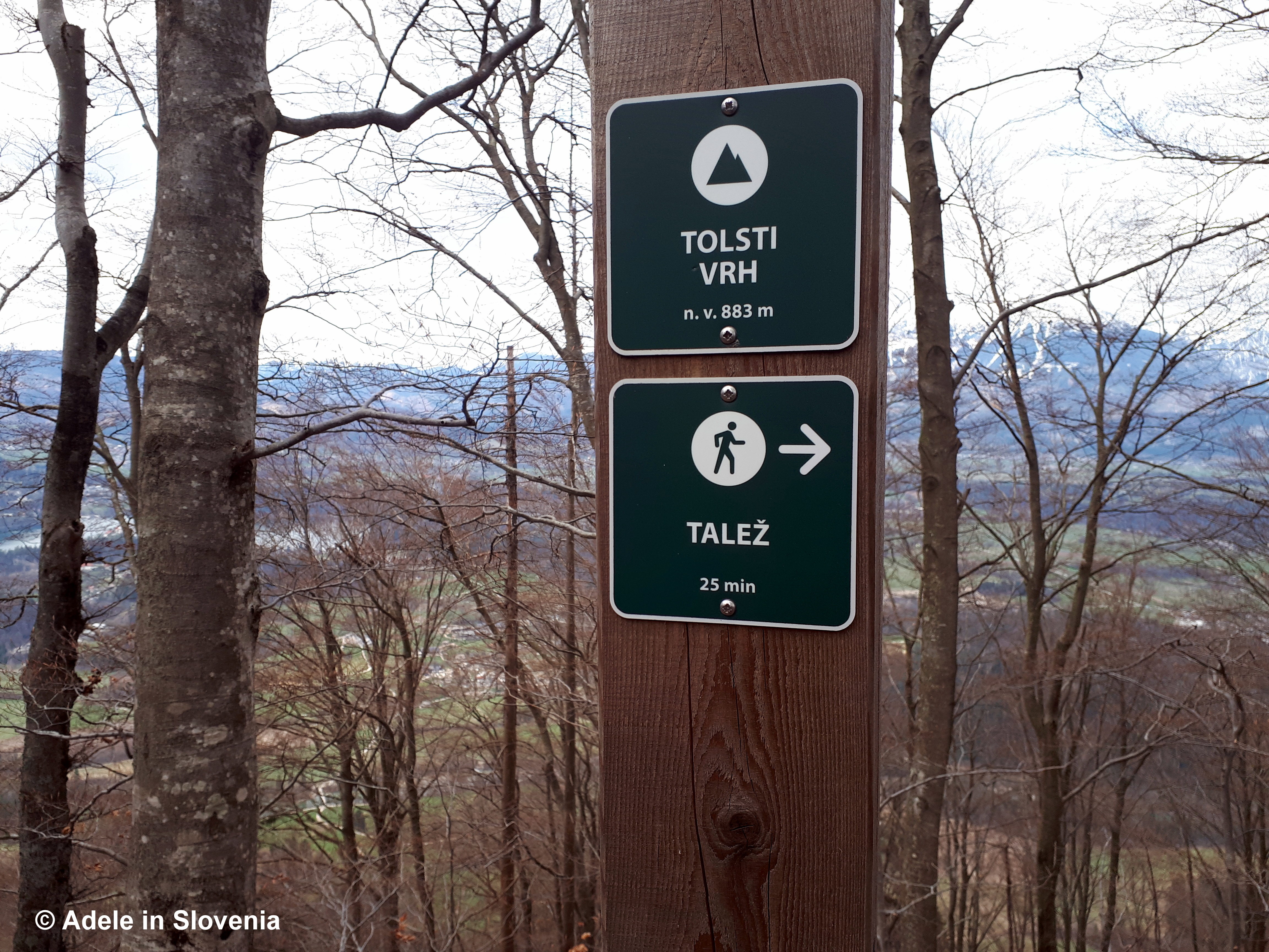 If you’d like to do a longer, circular walk then you continue onwards from the hut to the highest point of the Talež ridgeTolsti vrh. There are several options, but my preferred one is to continue past the hut following the green signs for Tolsti vrh.