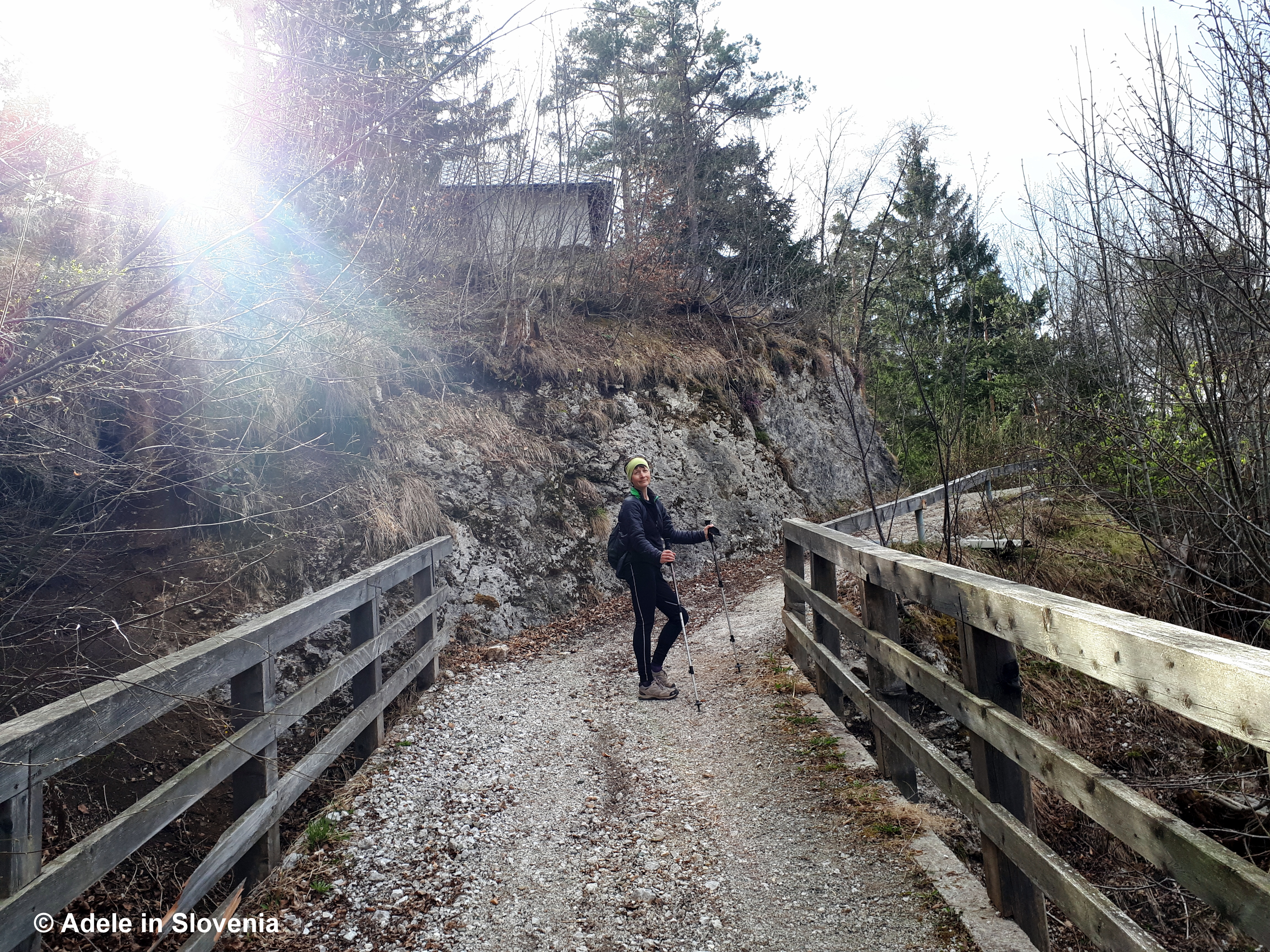 From Radovljica the most direct route leads down from the old town over the bridge above the railway line, down Cesta svobode road to reach the bridge across the Sava river at Lancovo. Cross the bridge then turn immediately right and after just cca. 100 metres take the left fork. Continue for cca. 150 metres to another fork, where you should continue straight ahead (not up to the left).