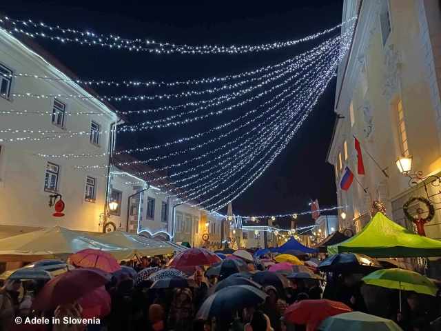 After the big switch on, comes the visit of the first of the ‘Three Good Men’ – St. Nicholas (the other two being Father Christmas and Grandfather Frost). St. Nicholas (Dedek mraz in Slovene) is a legendary figure similar to Father Christmas, whose roots are in Slavic mythology. He, like Father Christmas, arrives in towns and villages, and, together with his helpers, brings presents to children who have been good.