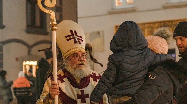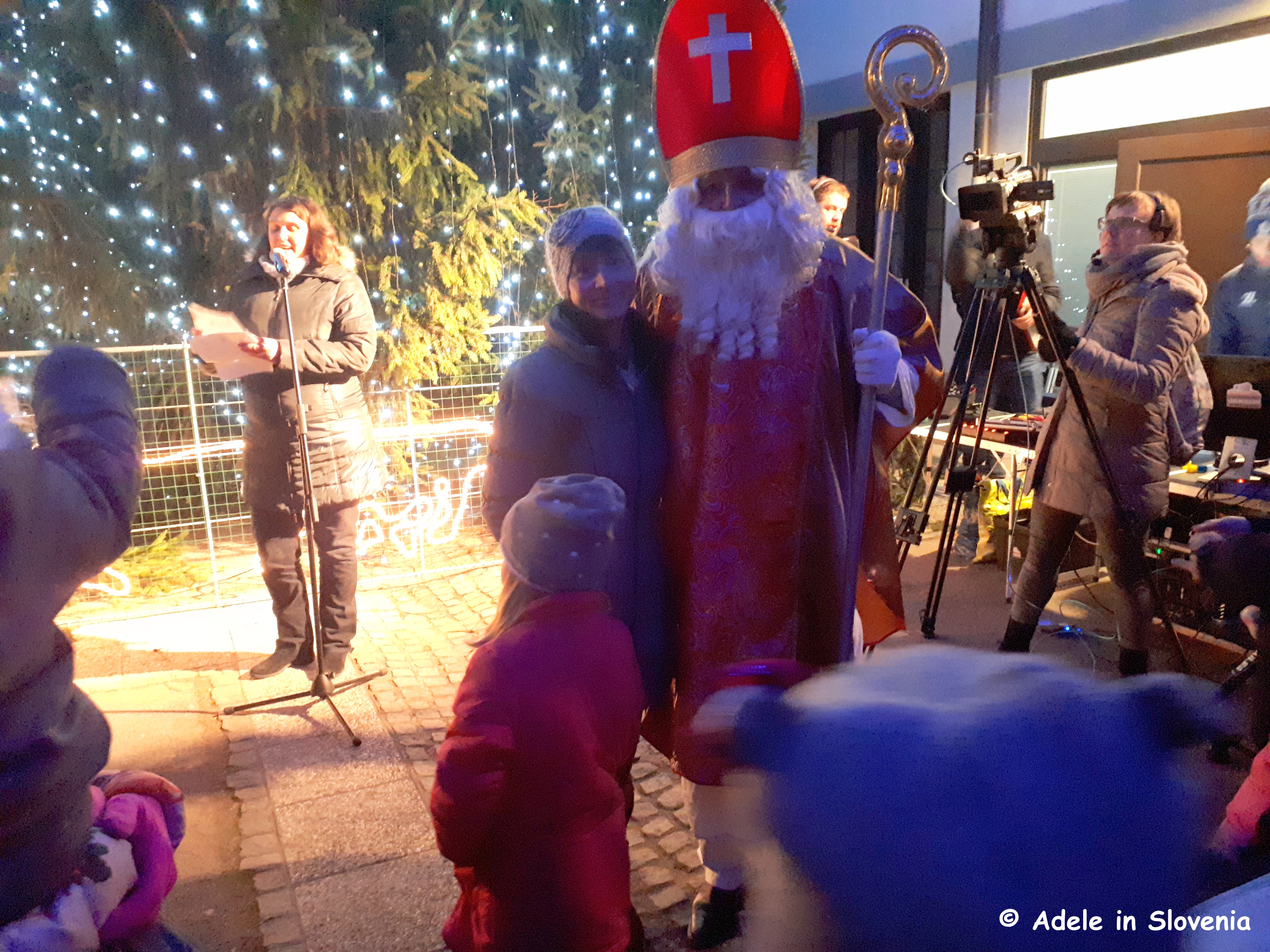 After the big switch on, comes the visit of the first of the ‘Three Good Men’ – St. Nicholas (the other two being Father Christmas and Grandfather Frost). St. Nicholas (Dedek mraz in Slovene) is a legendary figure similar to Father Christmas, whose roots are in Slavic mythology. He, like Father Christmas, arrives in towns and villages, and, together with his helpers, brings presents to children who have been good.