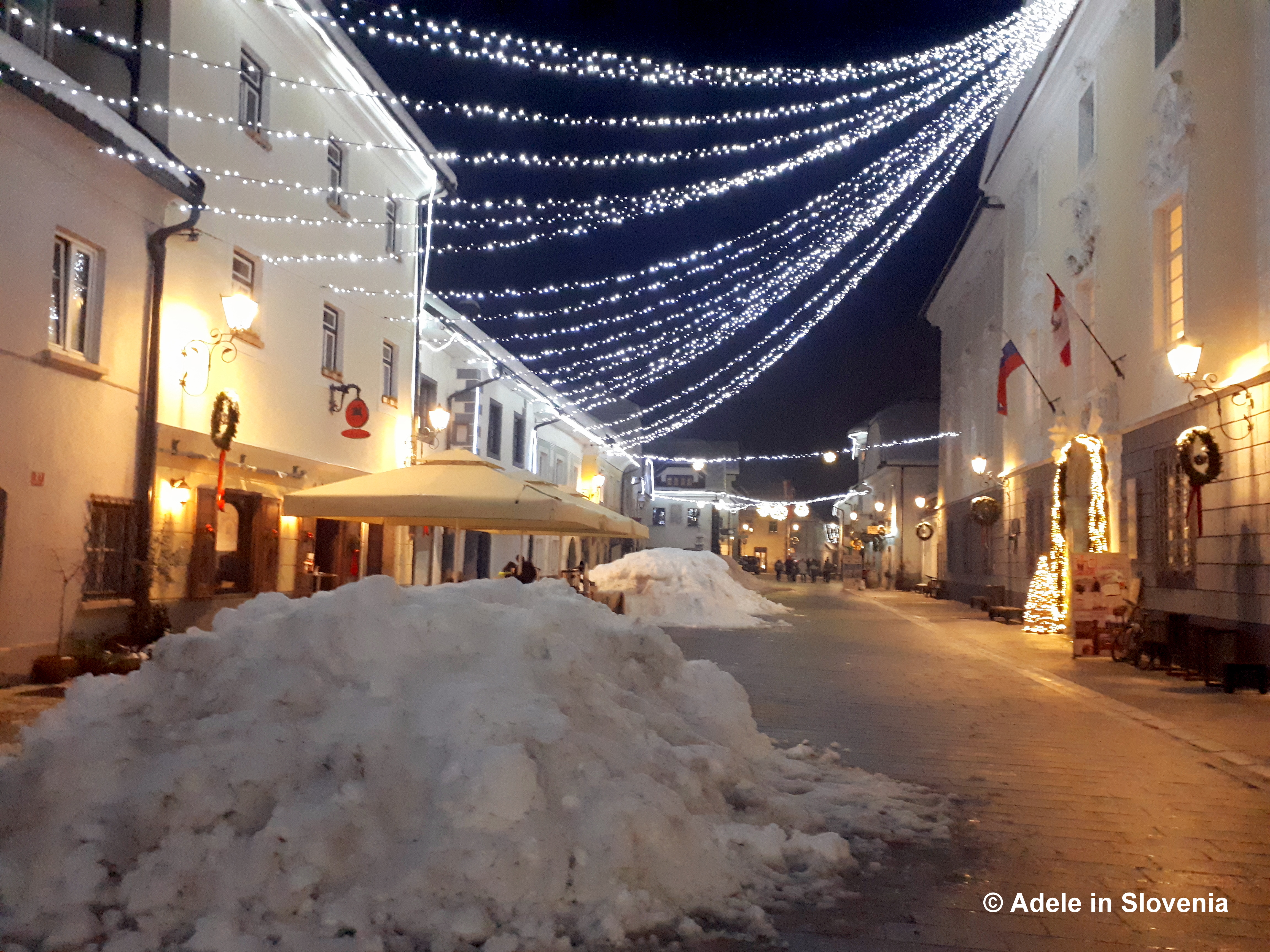 During my morning runs through Linhart Square over the past couple of weeks since returning to the Radovljica area, I was able to see the Christmas tree steadily taking shape as well as the gradual adorning of the square with various natural decorations and festive lights.
