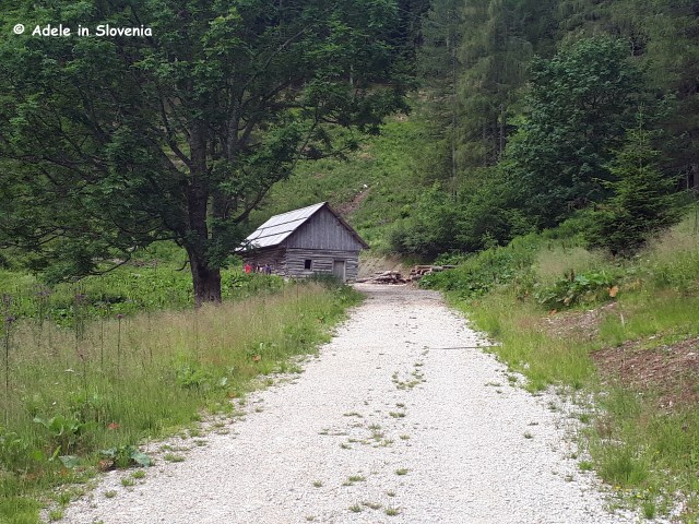 After a short walk up the road, you reach a junction, where either trail leads to the Koča na Dobrči mountain hut. We took the one to the right, as seen below.