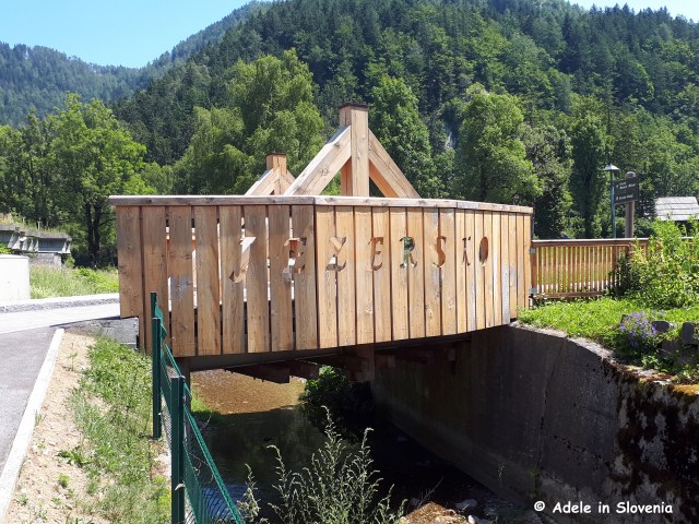 Keep following the marked path until you emerge onto the road close to a trough with drinking water, which both I and Charlie took advantage of, particularly as Bernarda tells me that Tržič’s water is among the best in the whole of Slovenia.