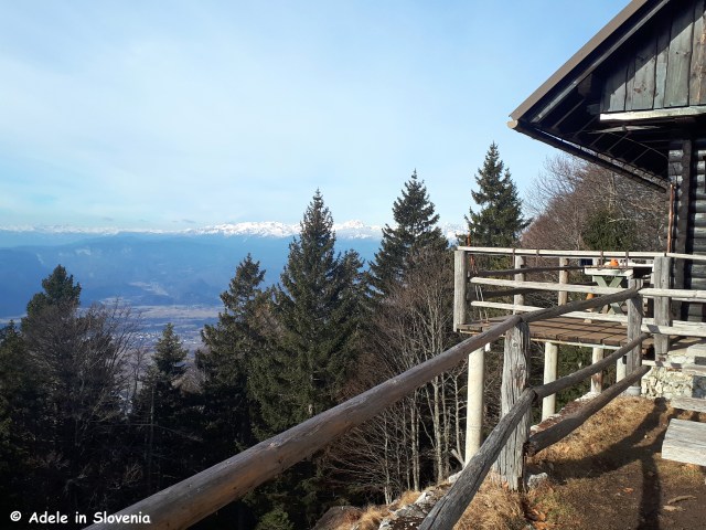Return to the main trail and continue on the well-marked path that leads up through the forest before emerging onto a clearing, from where there are great views across the Radovljica Plains towards the Jelovica plateau and further.