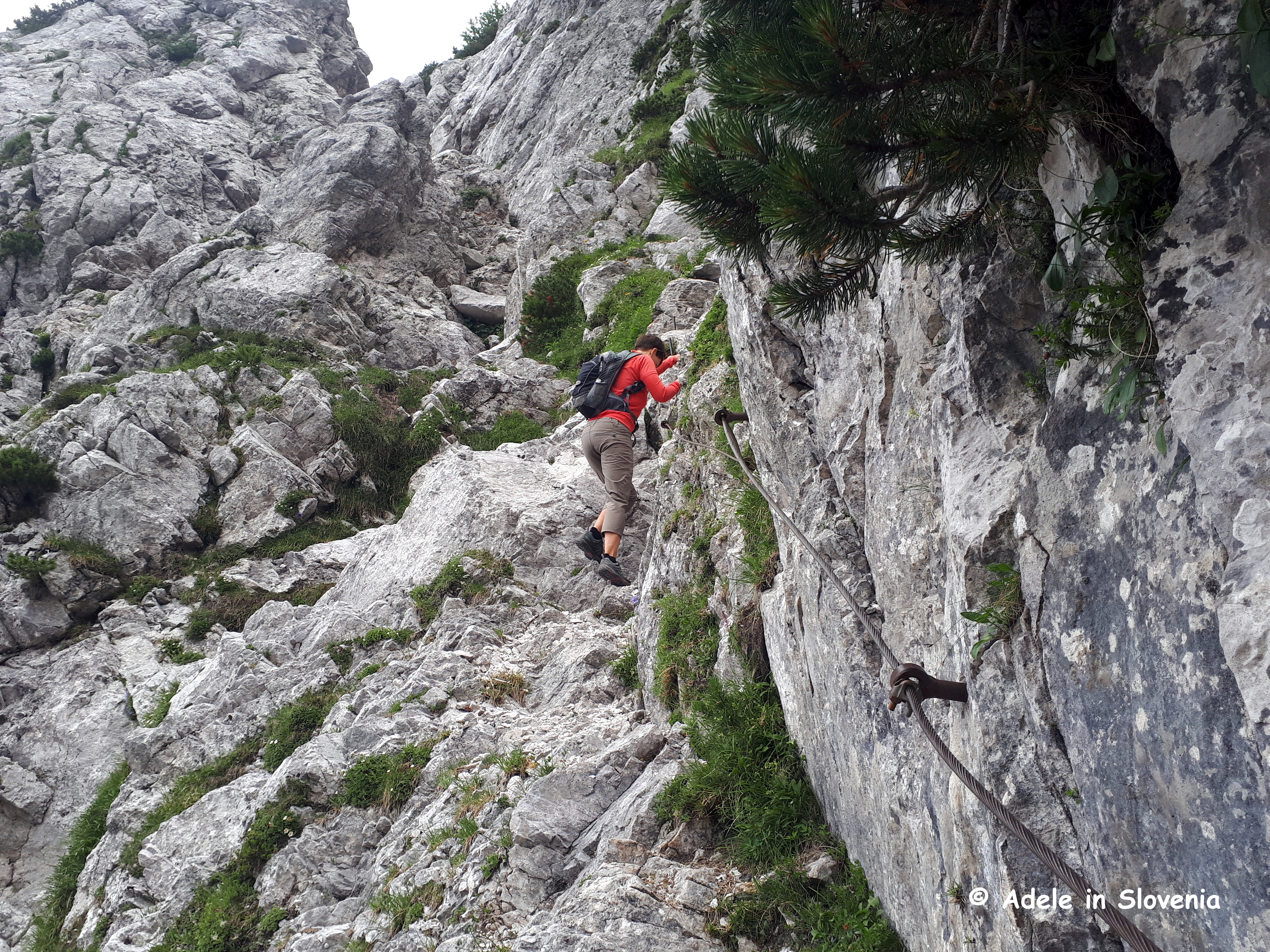 After descending for cca.15 mins, the trail joins the ‘Slovenska pot’ and begins to ascend steeply. There is one section – quite a long one – where there are iron rails and rungs and therefore extreme caution is required, but, credit where its due, the trail is well maintained and secure.