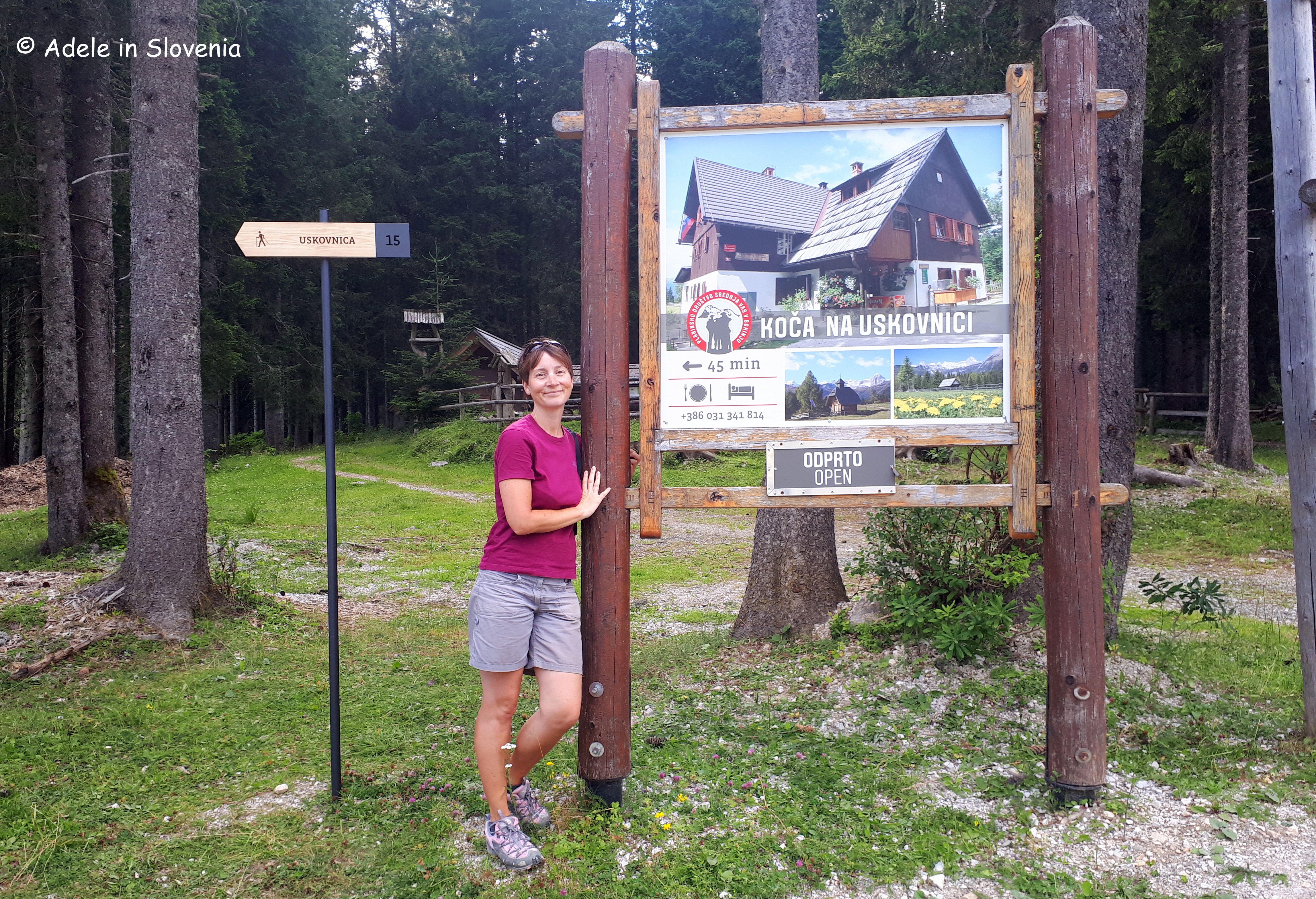 The route is well-marked and it only takes about 45-50 minutes to reach the pasture and the Koča na Uskovnici mountain hut.