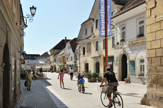From Radovljica the most direct route leads down from the old town over the bridge above the railway line, down Cesta svobode road to reach the bridge across the Sava river at Lancovo. Cross the bridge then turn immediately right and after just cca. 100 metres take the left fork. Continue for cca. 150 metres to another fork, where you should continue straight ahead (not up to the left).