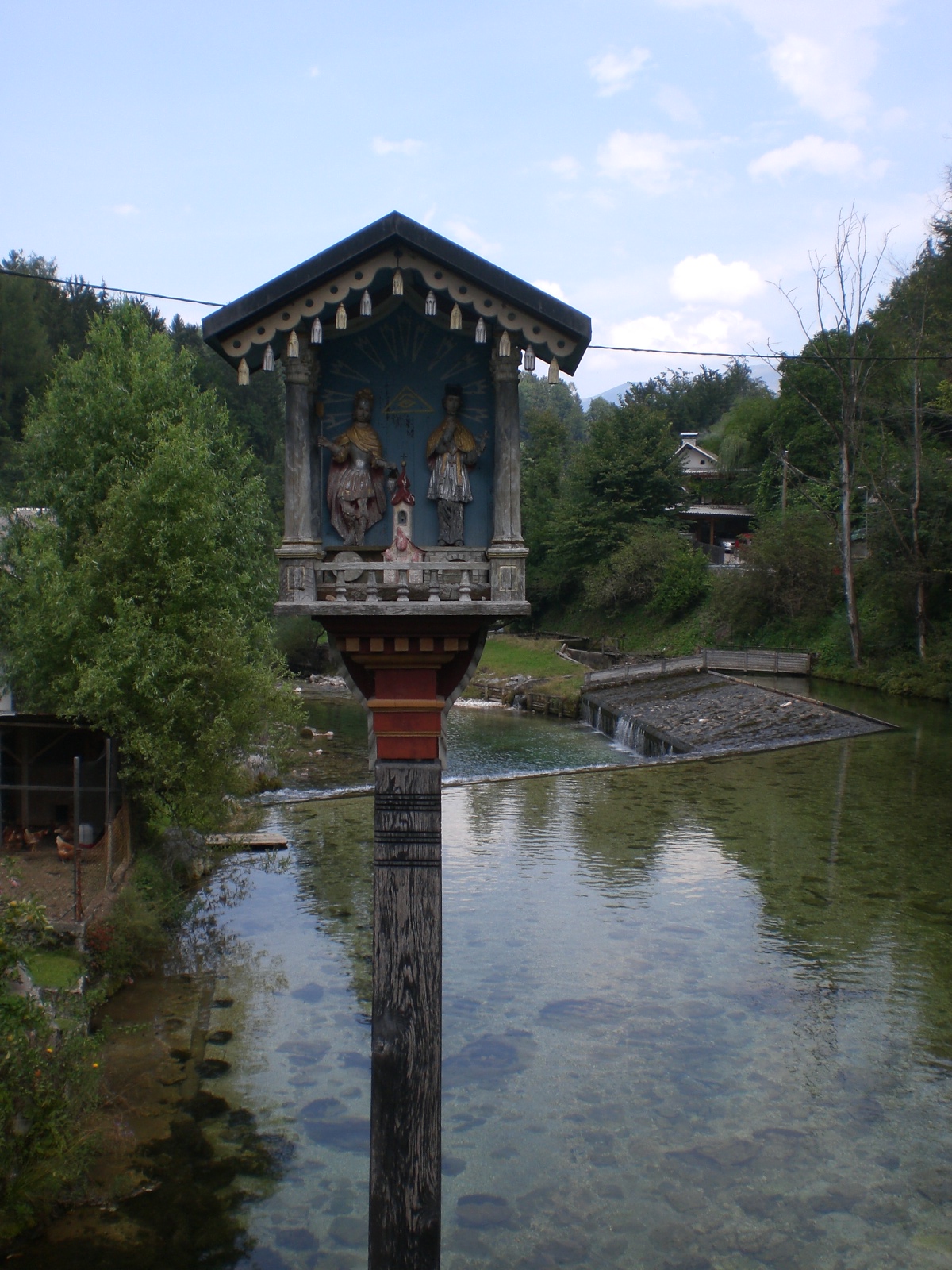 The village of Grabče is particularly quaint with its wooden bridge, renovated Grajski mlin(Castle Mill), former sawmill and iron-forge, and the tall wooden shrine which stands like a tower on a rock actually in the river.