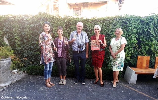 On the occasion of its publication, Petra invited us – the team behind the book (from left to right: Barbara Bogataj – designer; me(!) – translator; Ivan Esenko – photographer; Petra Bole – author; Mihaela Pichler Radanov – editor) to a little gathering in the garden of the Šivec House Gallery to celebrate.