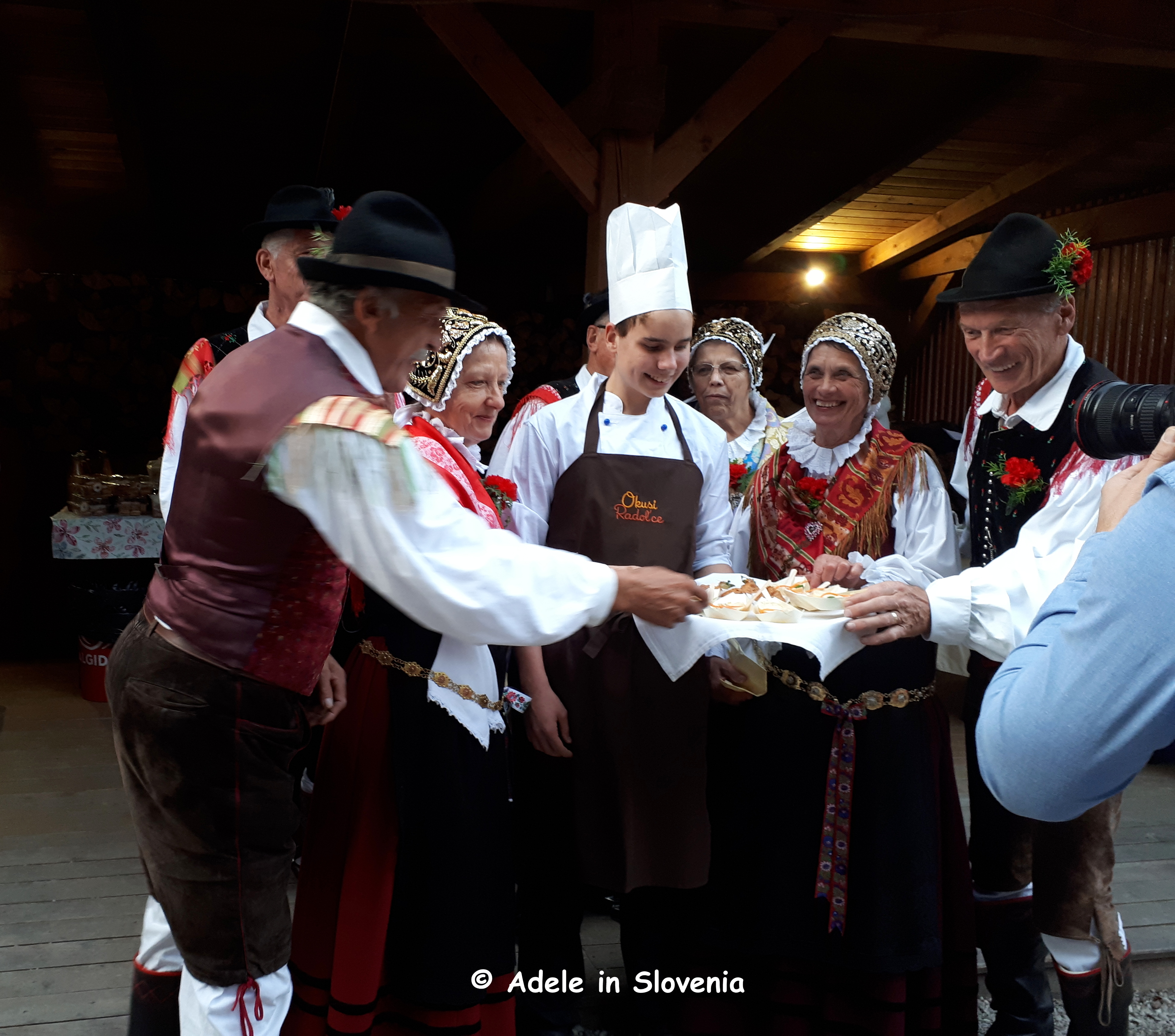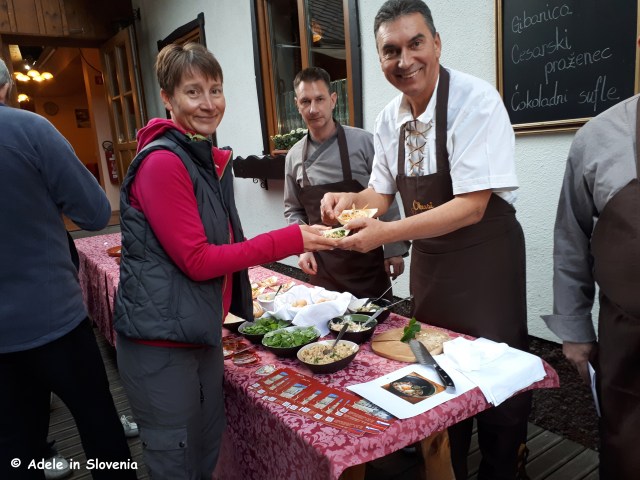 After about an hour and 15 minutes of hiking, you emerge onto a mountain pasture, home to the Koča na Prevalu mountain hut, where you can quench your thirst and/or enjoy a hearty pasture-style meal. This is one of first of four mountain huts that you pass on this trail – note: the huts are open daily during summer, but out of season some are closed whilst others open at weekends only. You can find out here what’s available to eat on Radovljica’s mountain pastures.