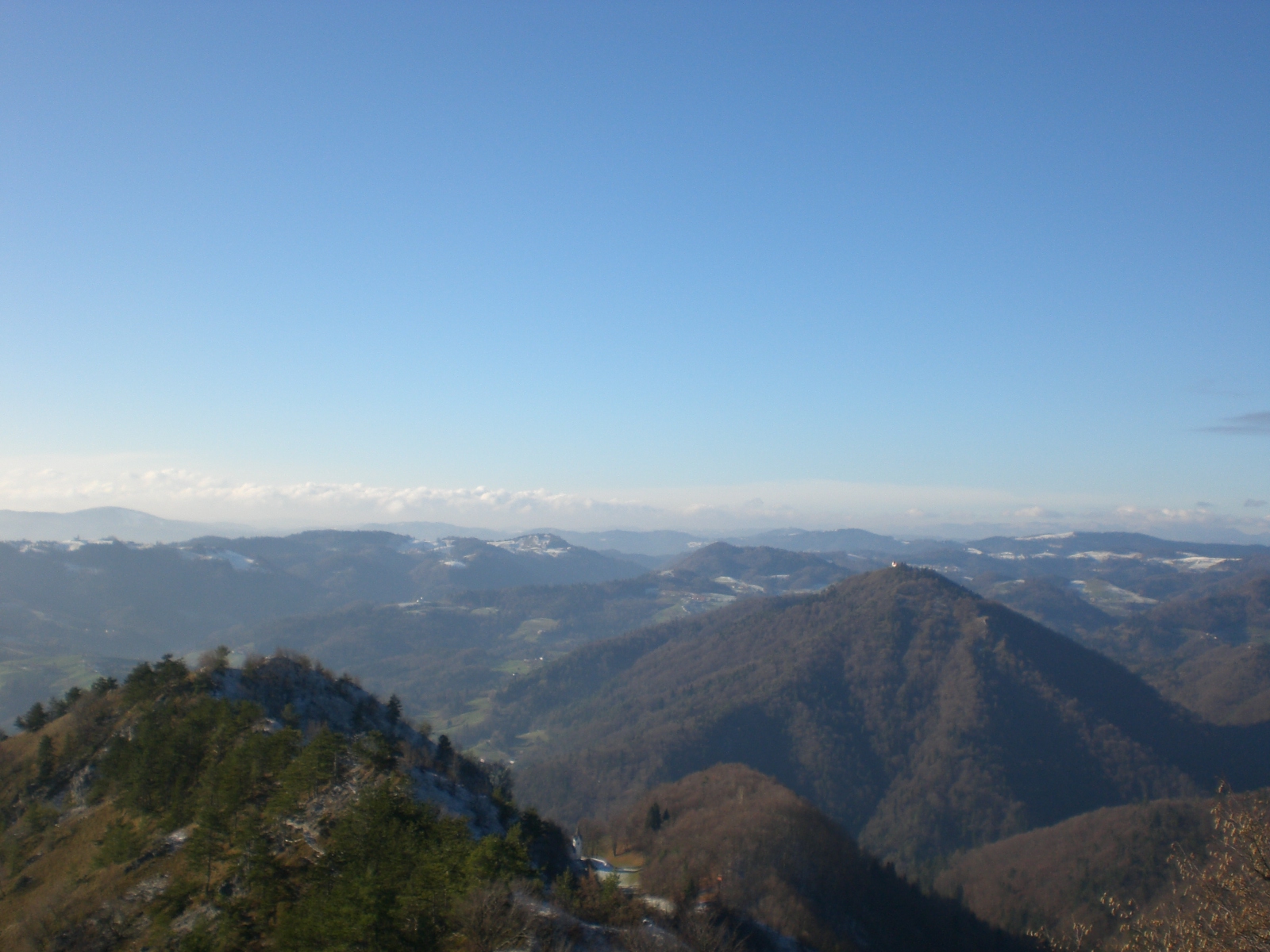 The Polhov hills lie just beyond Ljubljana’s suburbs and offer many hiking paths. I sometime hike in this area in the late-autumn/winter, when there is snow in the higher mountains. Below you can see me on the peak of Grmada (898m), though not the highest – that is Tošč (1021m) – on a clear day it offers the most wonderful far-reaching views and is certainly more than worth the effort to get there. You can read more about my hikes there in previous blogs such as this one – http://wp.me/p3005k-93