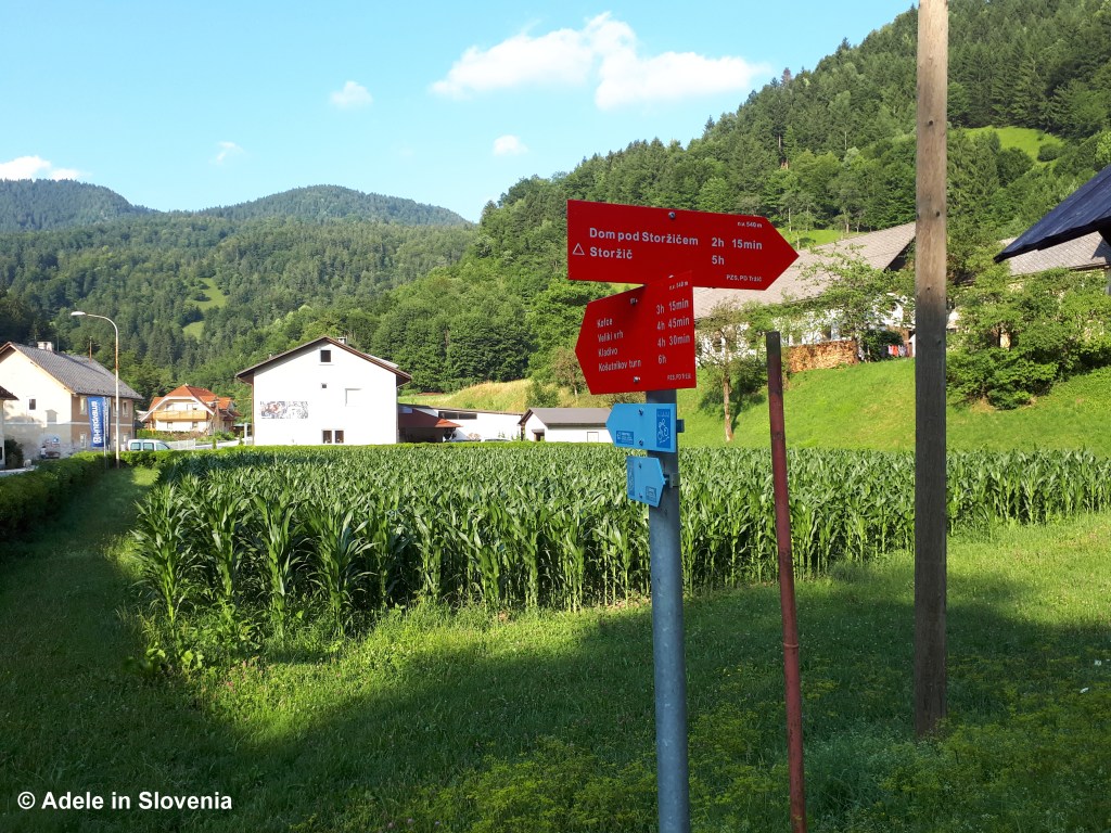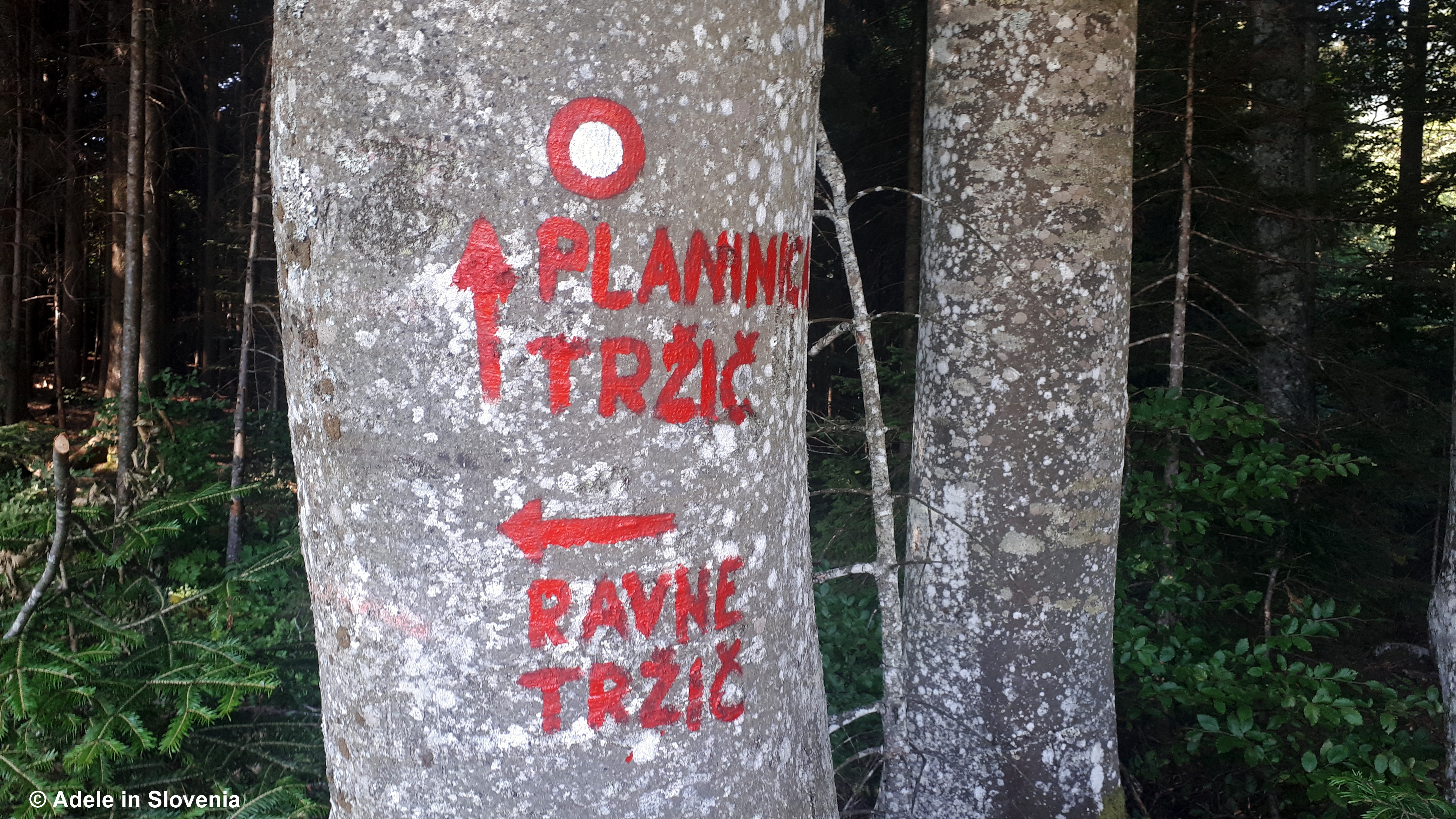 This particular trail begins from almost opposite St. Agnes’s church (Slovene: Sveta Neža) in Brezje pri Tržiču, which is located alongside the road that leads from Begunje na Gorenjskem to Tržiška Bistrica.