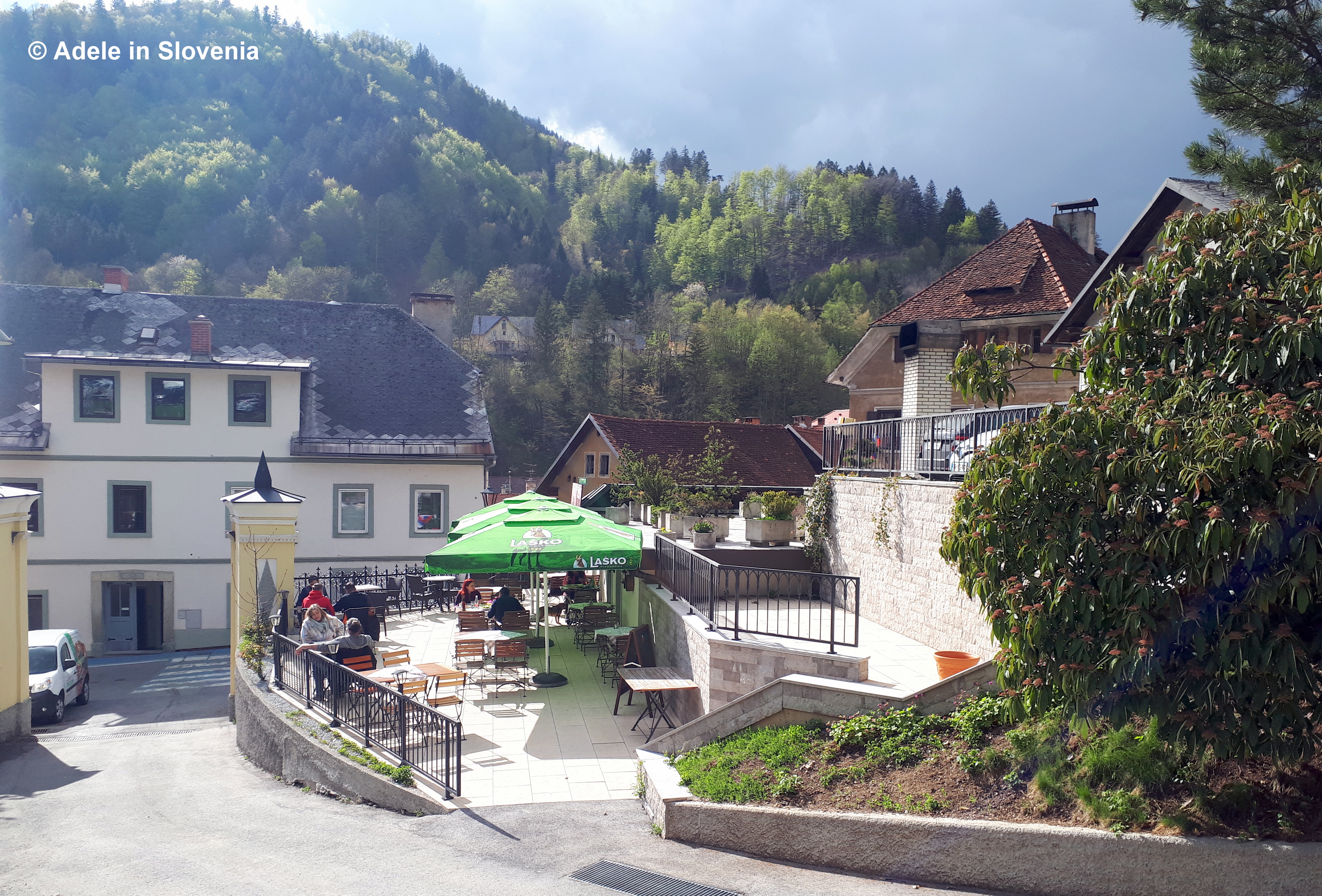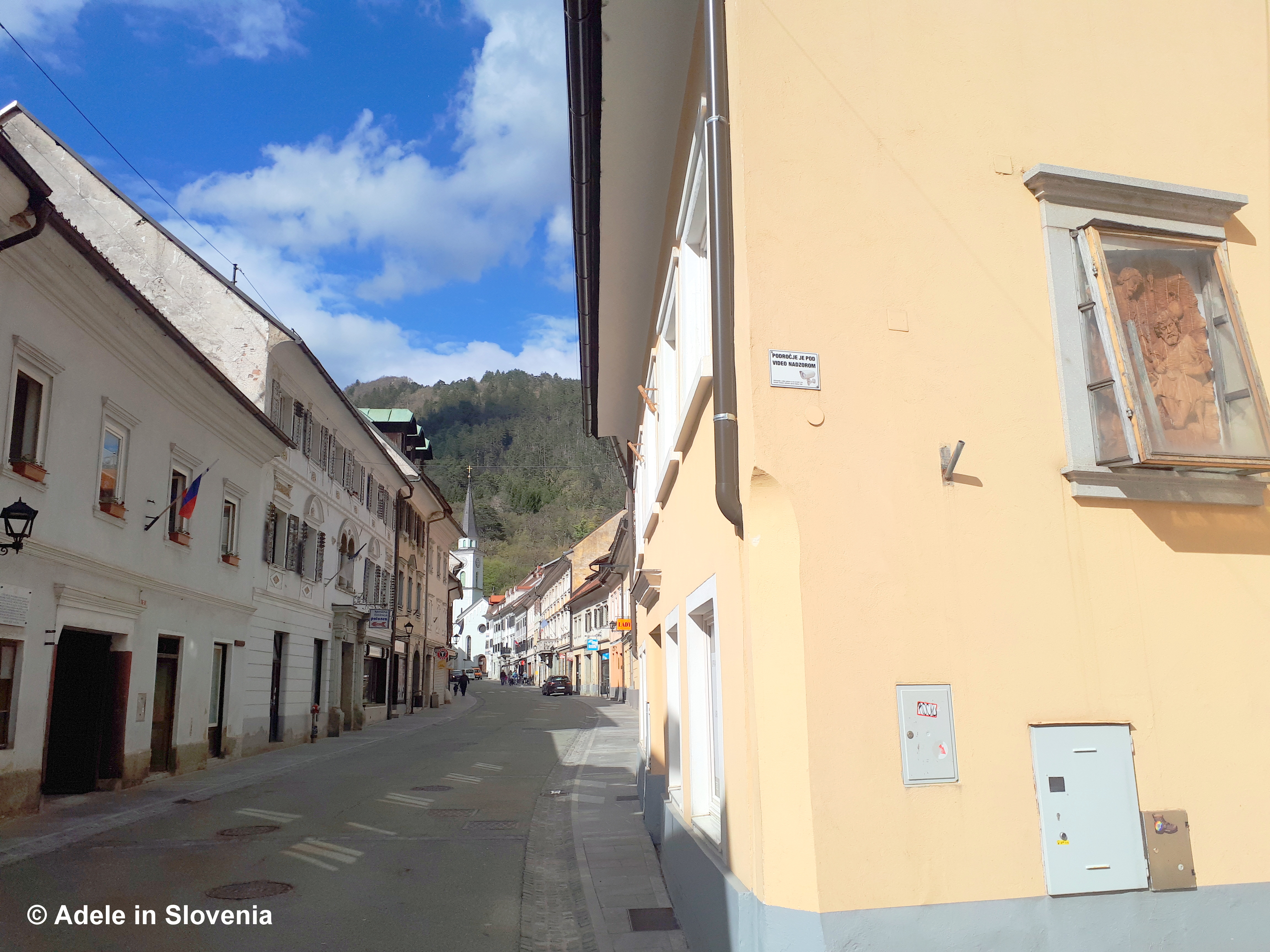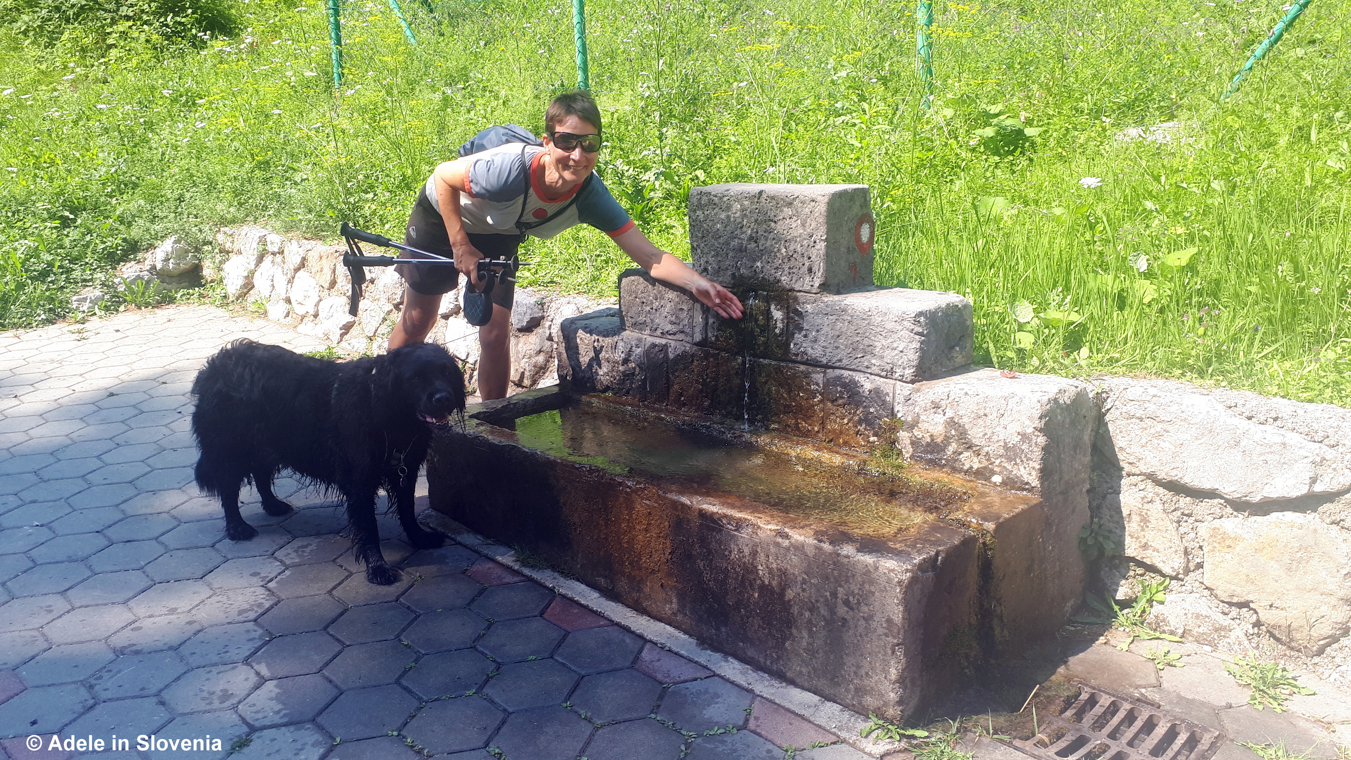 Keep following the marked path until you emerge onto the road close to a trough with drinking water, which both I and Charlie took advantage of, particularly as Bernarda tells me that Tržič’s water is among the best in the whole of Slovenia.