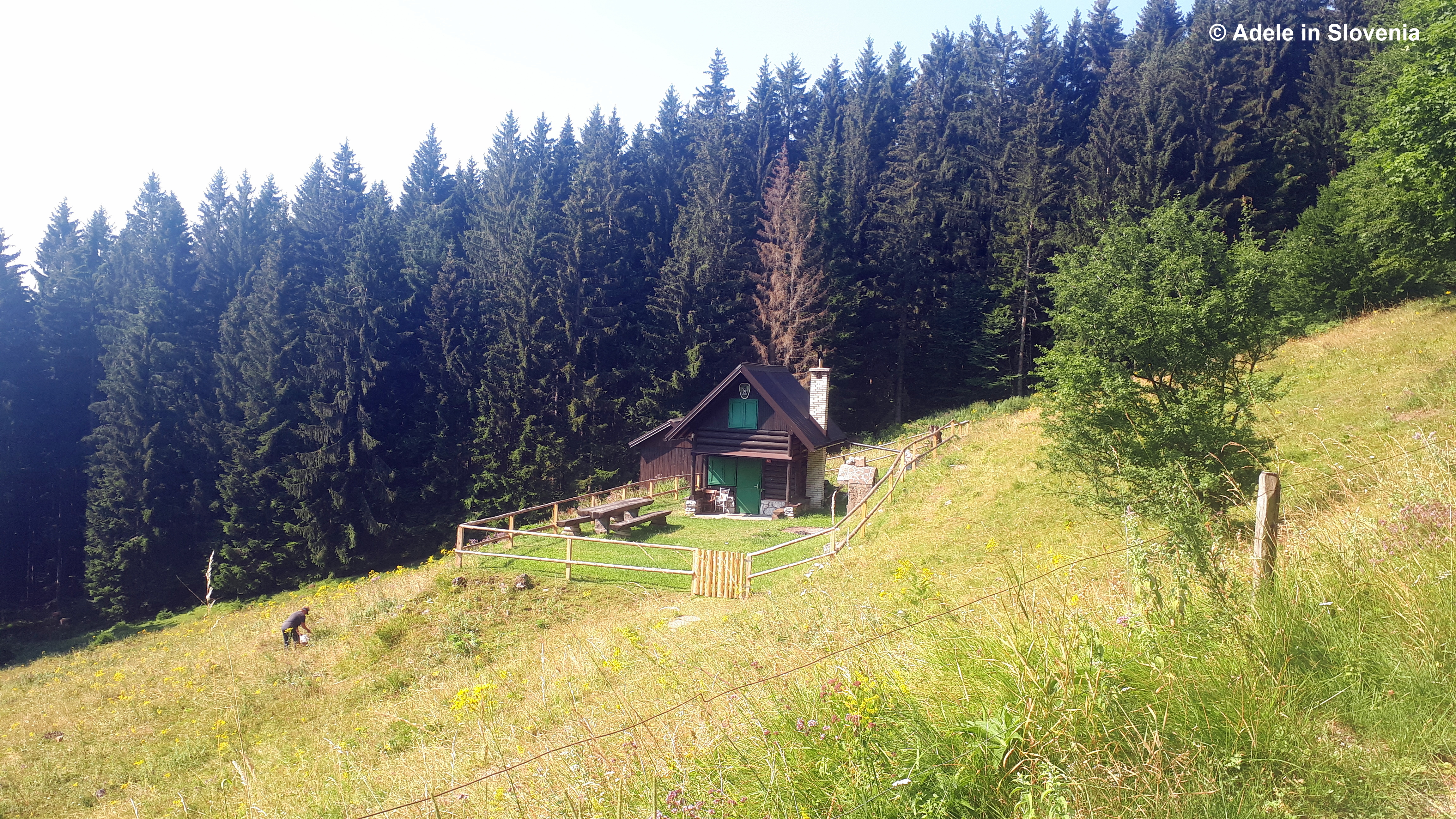 From the pasture you can continue up to the Koča na Dobrči mountain hut or, for a shorter hike, and if you want to do a circular route – you know how much I love a good circular route! – head back the same way, but only for a few minutes, past the Lešanska planina sign (as shown above) to the bend in the road then follow the road down until you reach a junction.