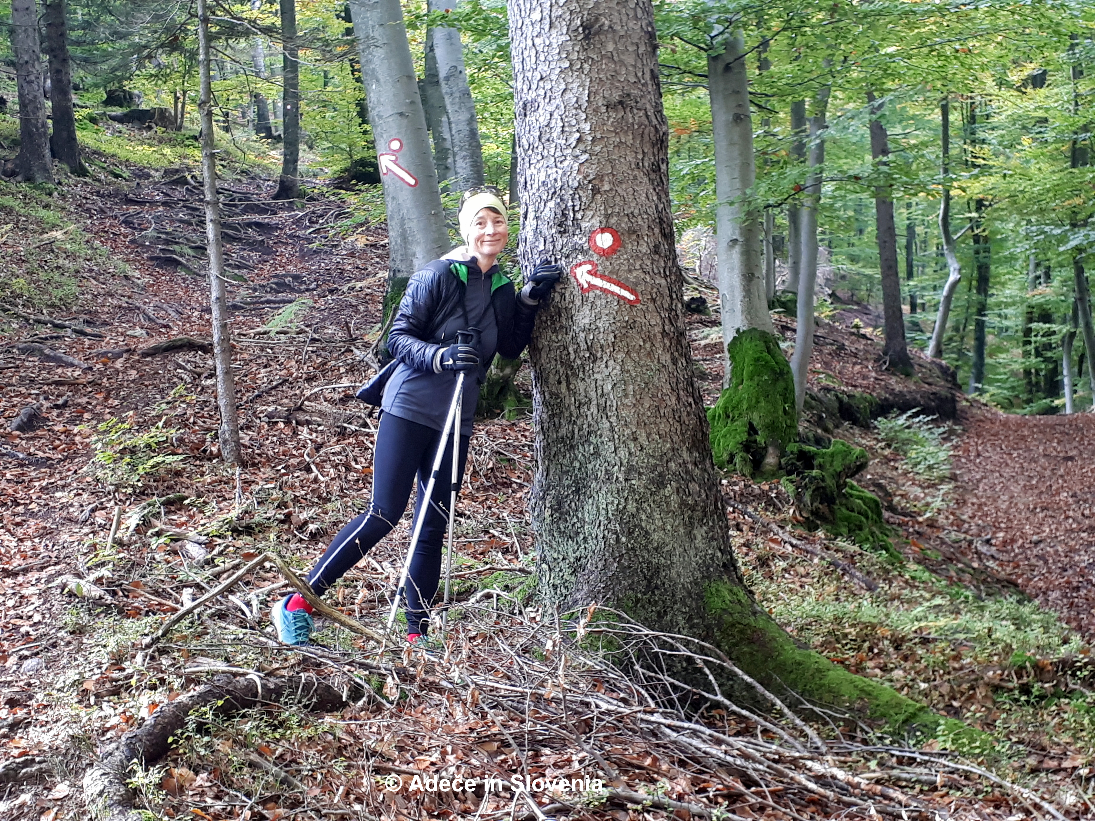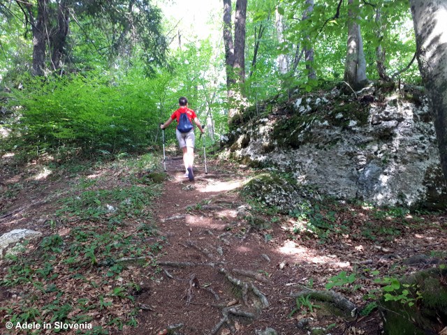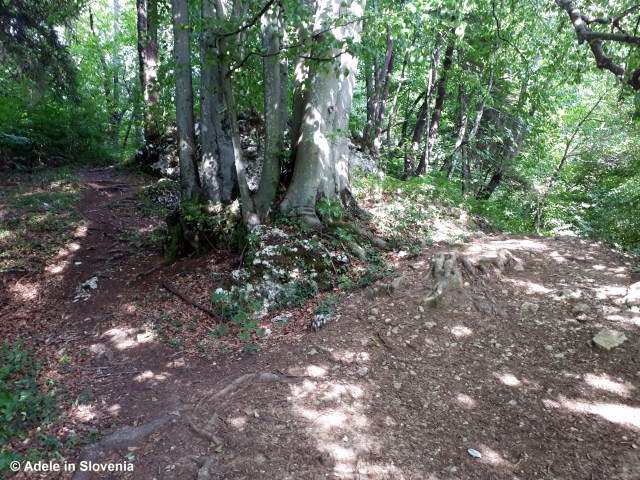The trail starts on the left-hand side of the gravel road that leads up to the Jelovica plateau then soon crosses the road and continues on the other side.