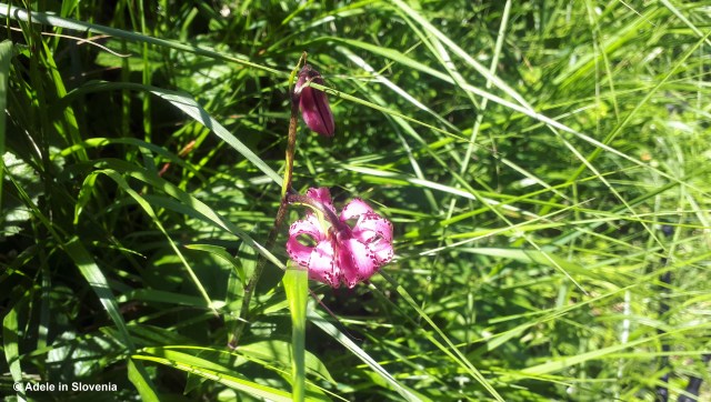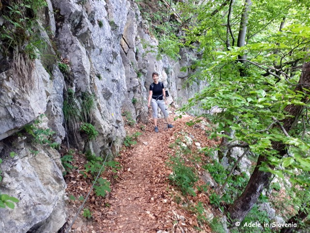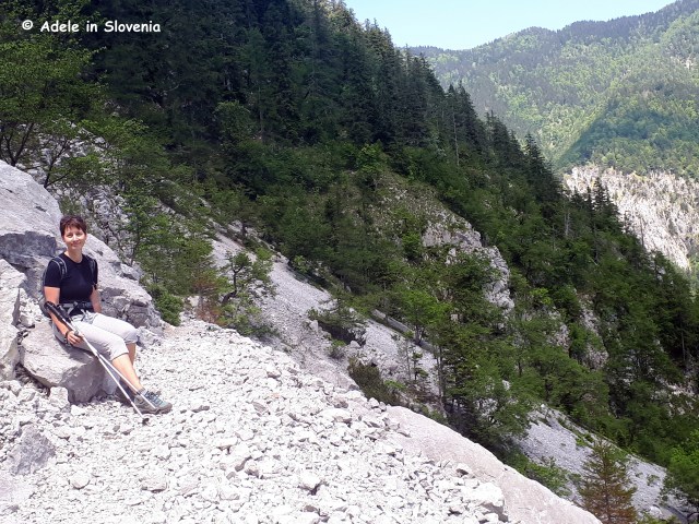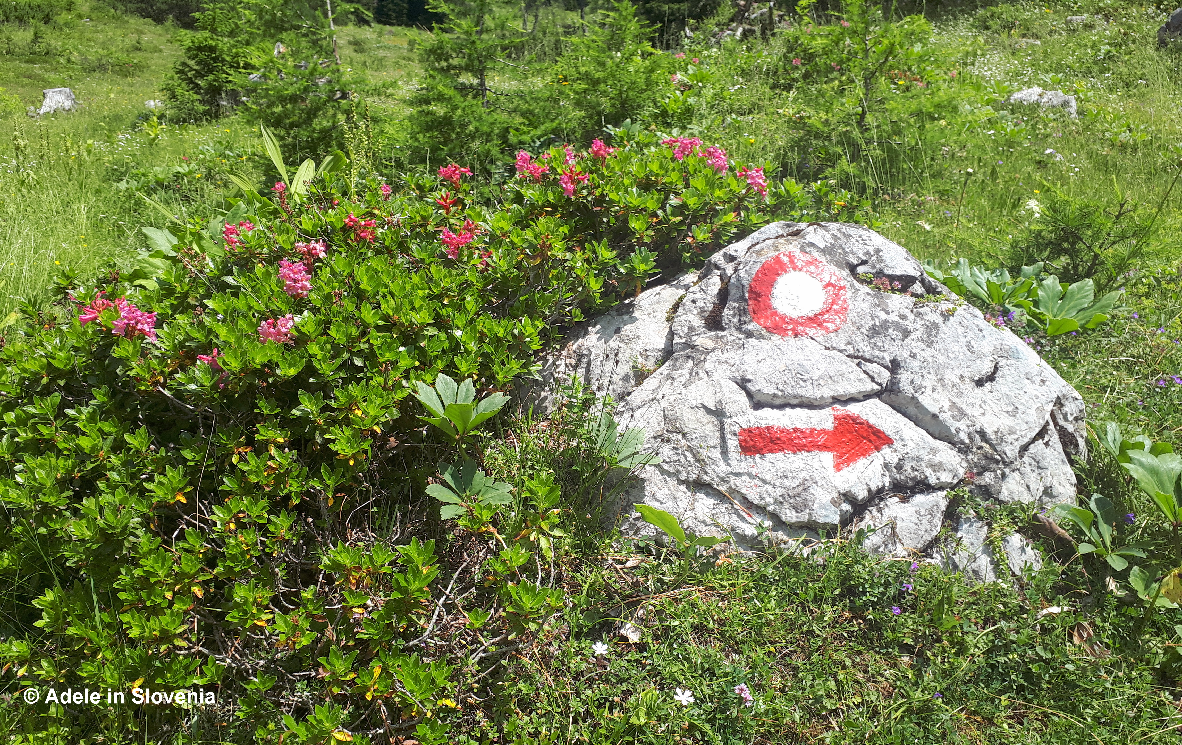 The path is well marked with the usual red and white trail markers. It initially leads along a magnificent scenic trail with wild flowers and butterflies galore, then across scree towards Vrtača, where it splits; the upper trail leads towards the peak of Vrtača, while the lower ones is marked towards Stol, which we took.