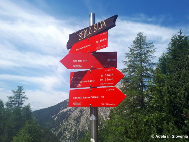 We turned left at the above sign and went downhill for a few minutes to reach the Šija saddle, where you are again greeted with an array of signs.