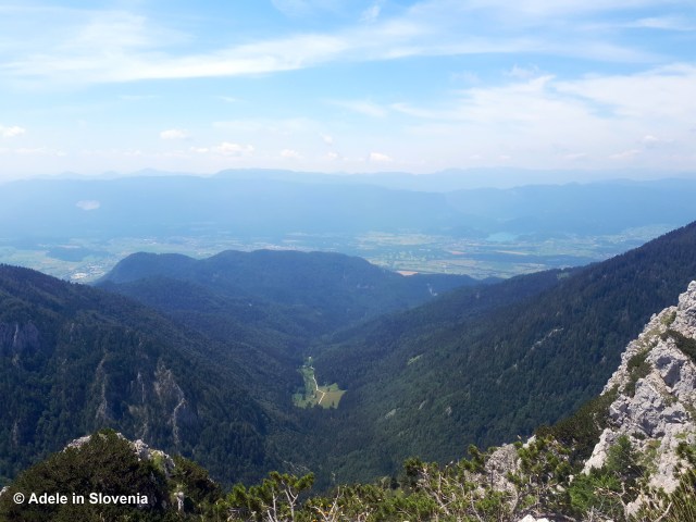 From the saddle it’s just a short 20 minute climb up to the top of Srednji vrh. From the top, on a clear day, you can see Lake Bled and across the Radovljica Plains towards the Julian Alps. We, however, didn’t have such luck; when we started out it was a perfect cloudless day but it soon clouded over and the wind got up, hence the views are just ‘great’ instead of ‘stunning’!