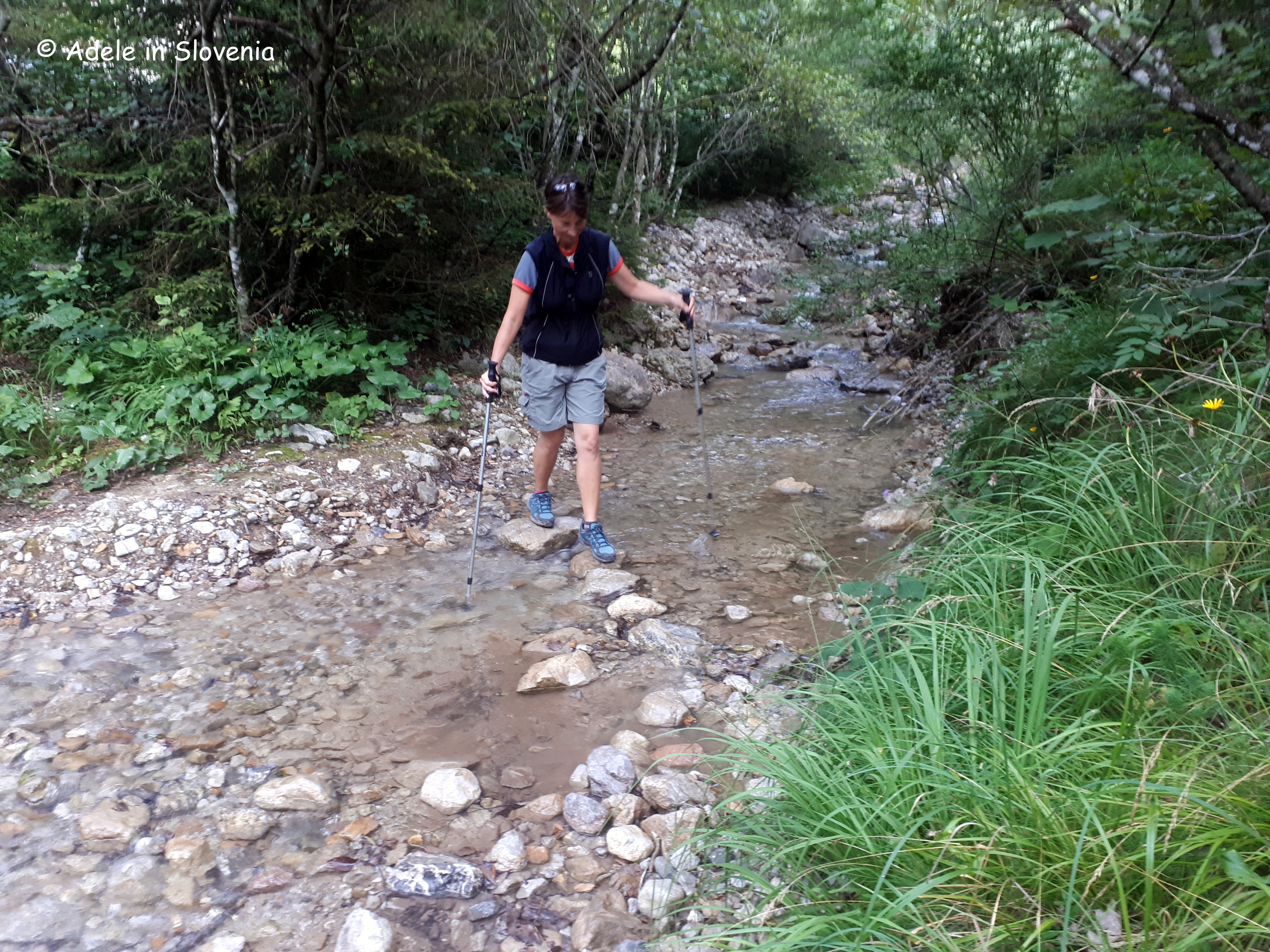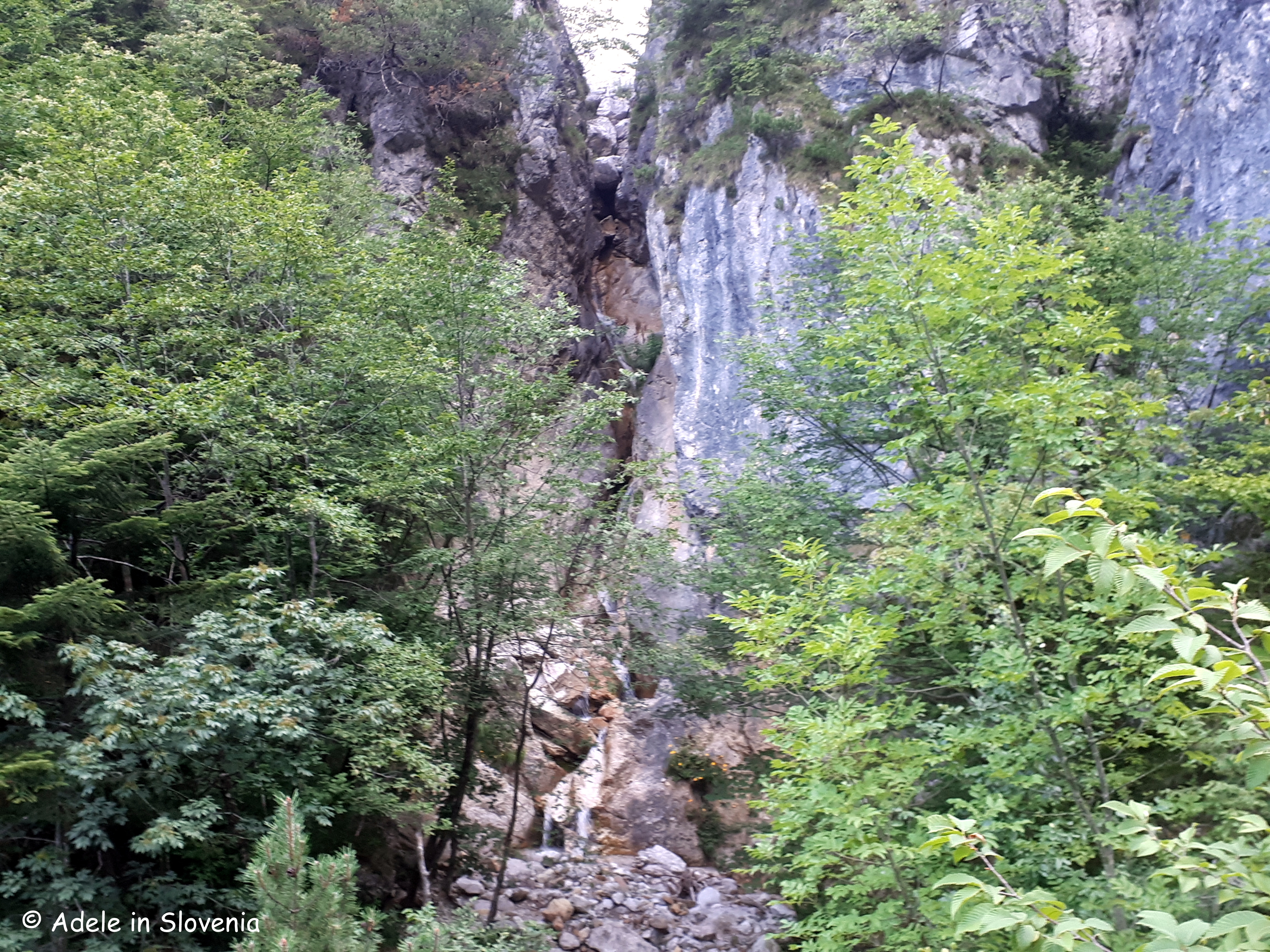 Just a few minutes after passing the mine shaft, the trail joins the main trail that leads from the valley up to the Roblekov dom mountain hut and on to Mt. Begunščica or you could follow the trail back down to the valley, thus completing the circular route.