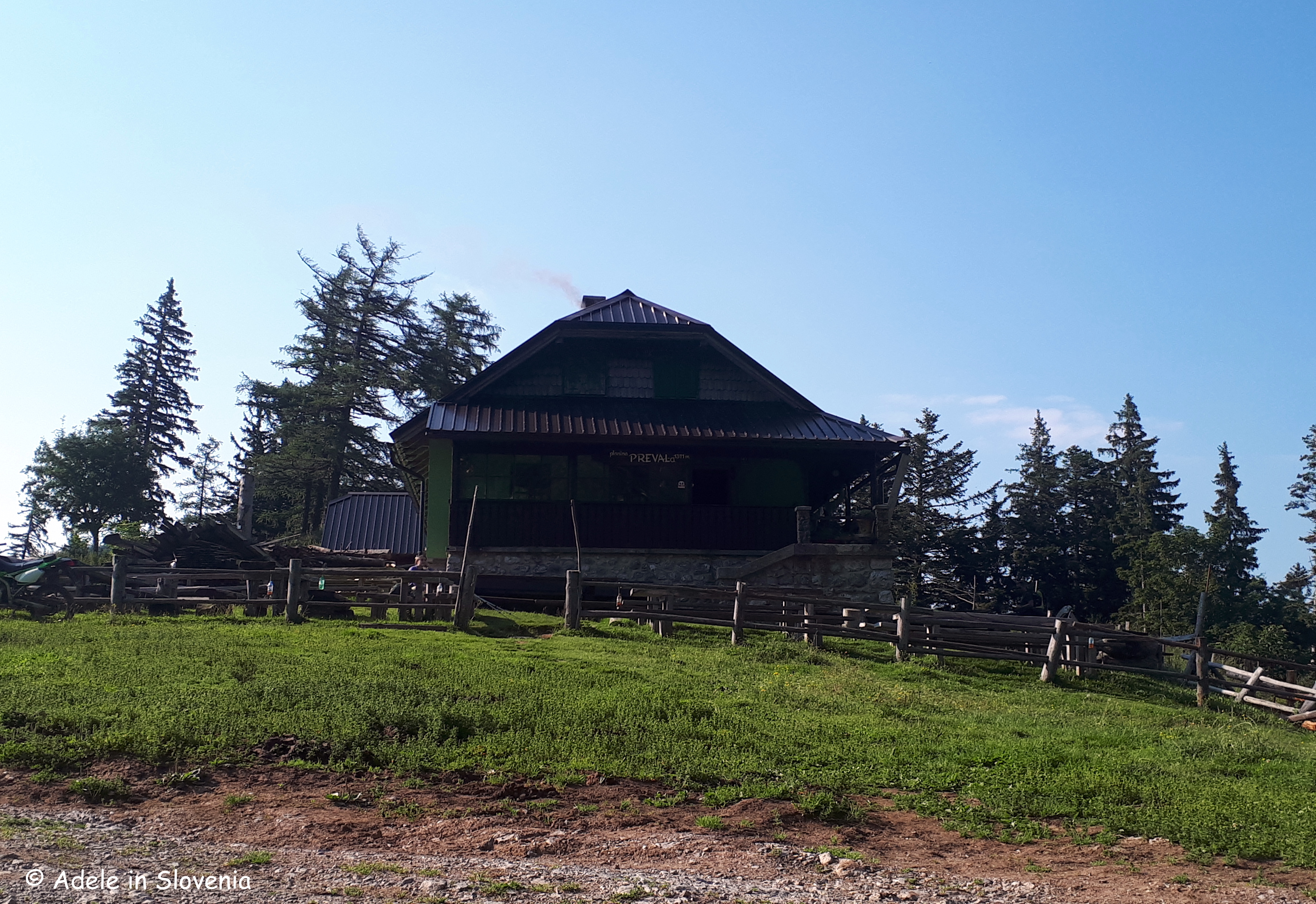After about an hour and 15 minutes of hiking, you emerge onto a mountain pasture, home to the Koča na Prevalu mountain hut, where you can quench your thirst and/or enjoy a hearty pasture-style meal. This is one of first of four mountain huts that you pass on this trail – note: the huts are open daily during summer, but out of season some are closed whilst others open at weekends only. You can find out here what’s available to eat on Radovljica’s mountain pastures.