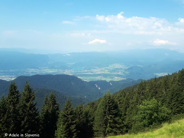 Now follow the forest road to the left for about 10 minutes, then take the path branches off to the right and begins to climb up again on the path marked as ‘čez Roža’. You are soon rewarded with wonderful views of the Radovljica Plains, the Jelovica plateau, Lake Bled, and the Julian Alps with Triglav National Park.