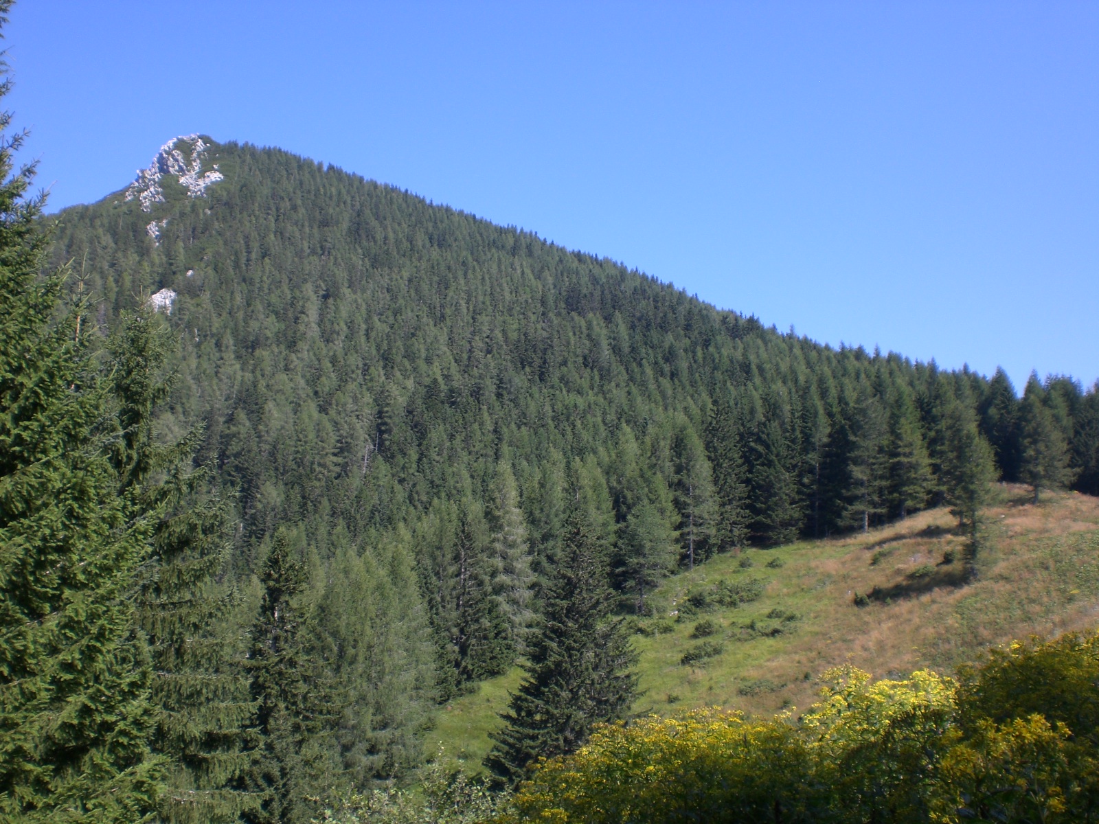 After passing the barracks, continue slightly upwards until you meet the main road that leads upwards towards the border with Austria – the Pavlič pass (Pavličevo sedlo). Turn left and walk back towards Jezersko towards St. Andrew’s church (sv. Andrej).