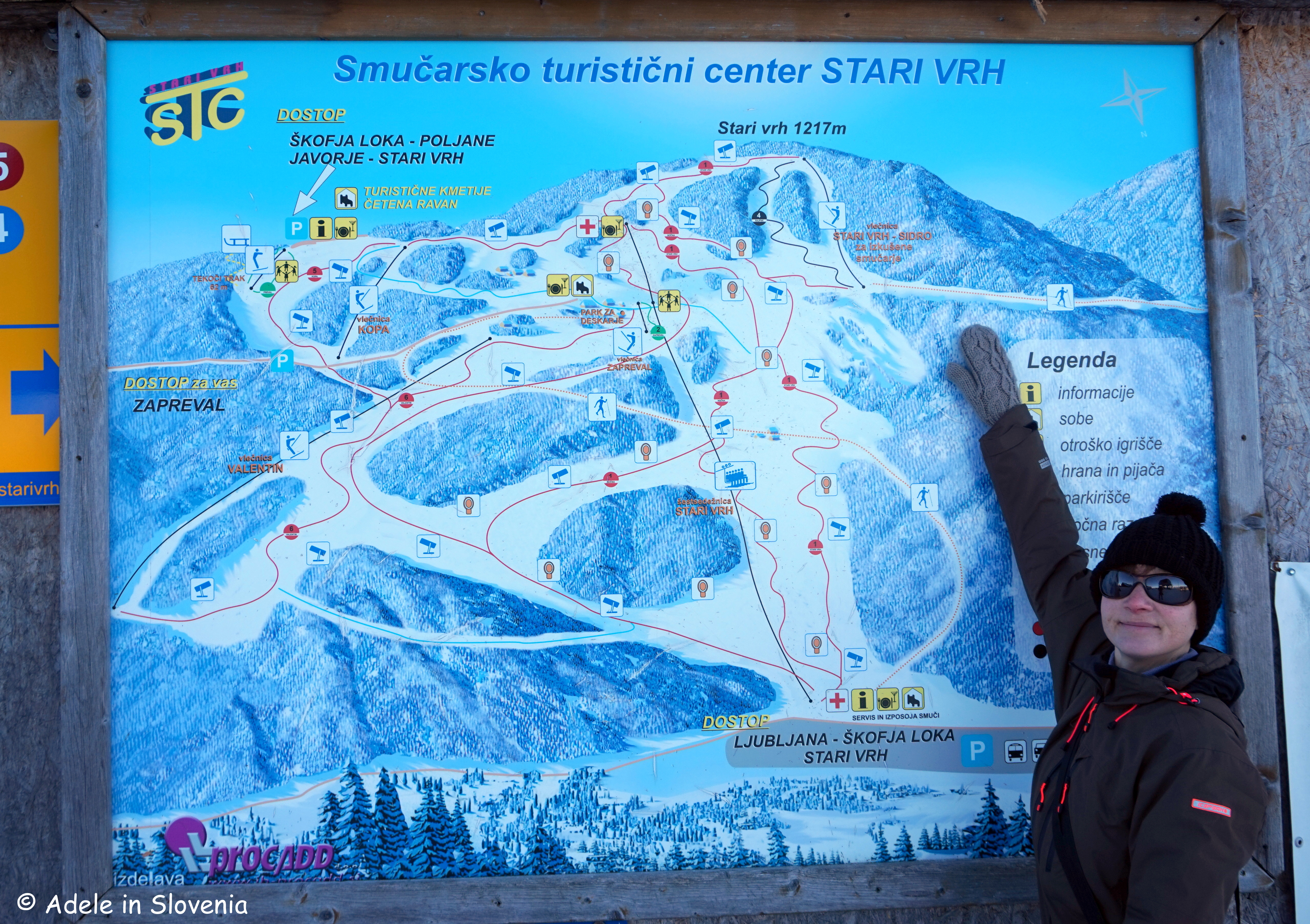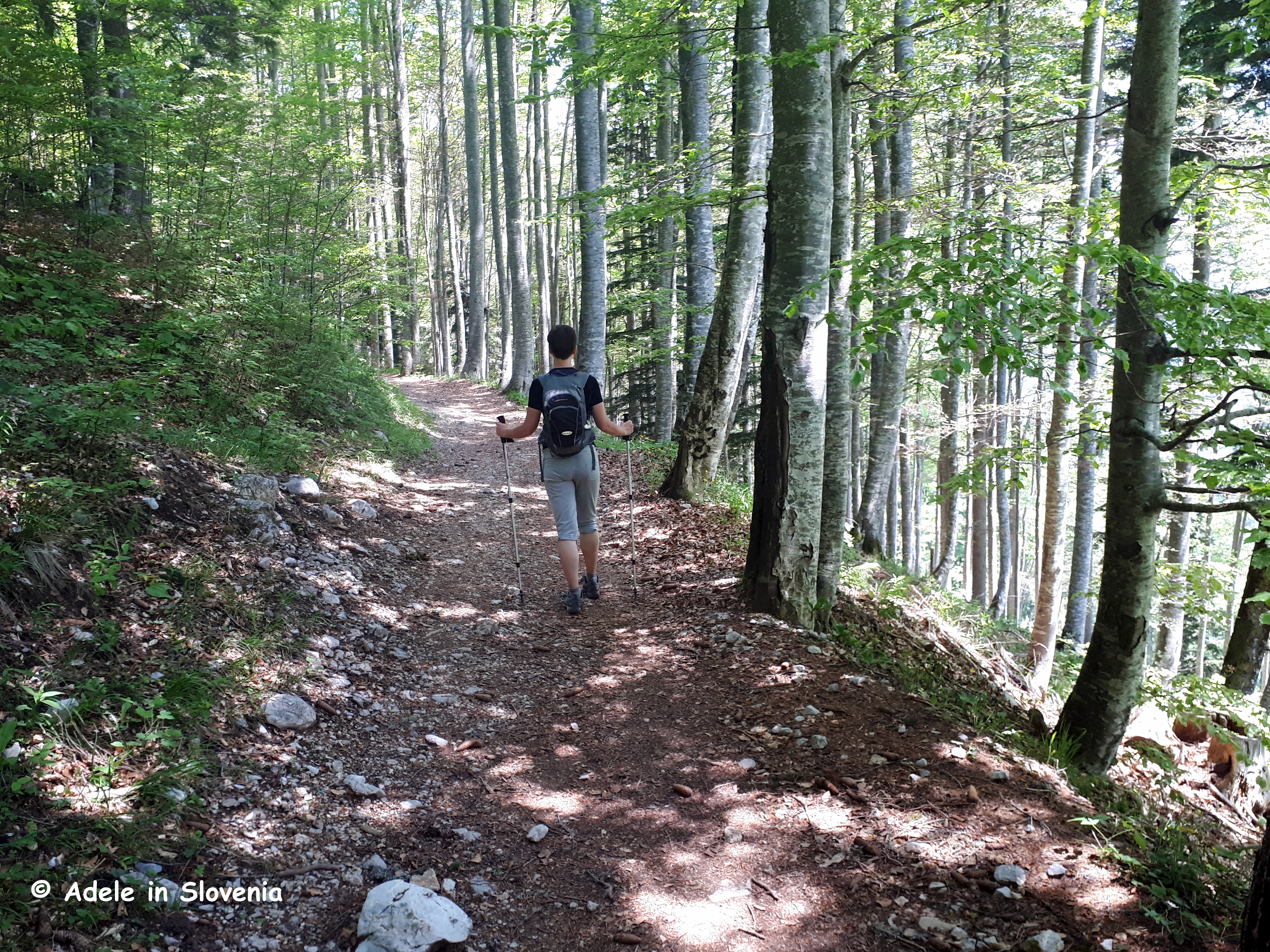 The trail begins at the large (free) car park at the foot of the Zelenica ski piste, where there is an information board and map about ‘Adventures in Tržič‘. The path begins by crossing an area of boulders before entering the forest.