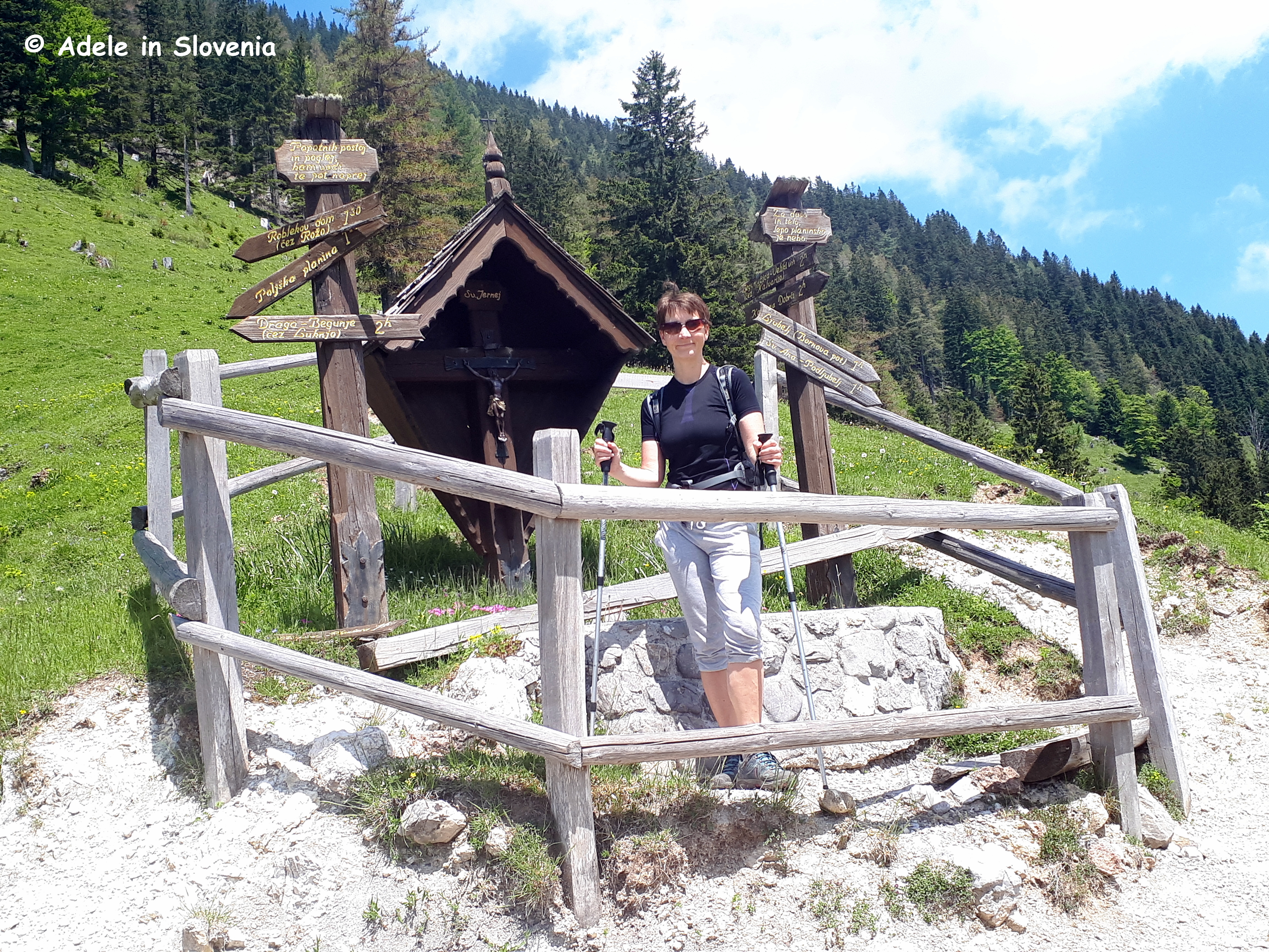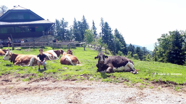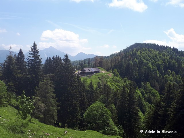 From the pasture you can also choose to extend your hike, either up the (very!) steep trail that leads directly up to the peak of Begunjščica, or follow the forest road towards the Planinca mountain hut and pasture where you can either branch off to the right after cca. 10 mins to take the ‘čez Roza‘ trail to the Roblek mountain hut (Roblekov dom), or continue on the road which descends to reach the Planinca mountain pasture and hut.