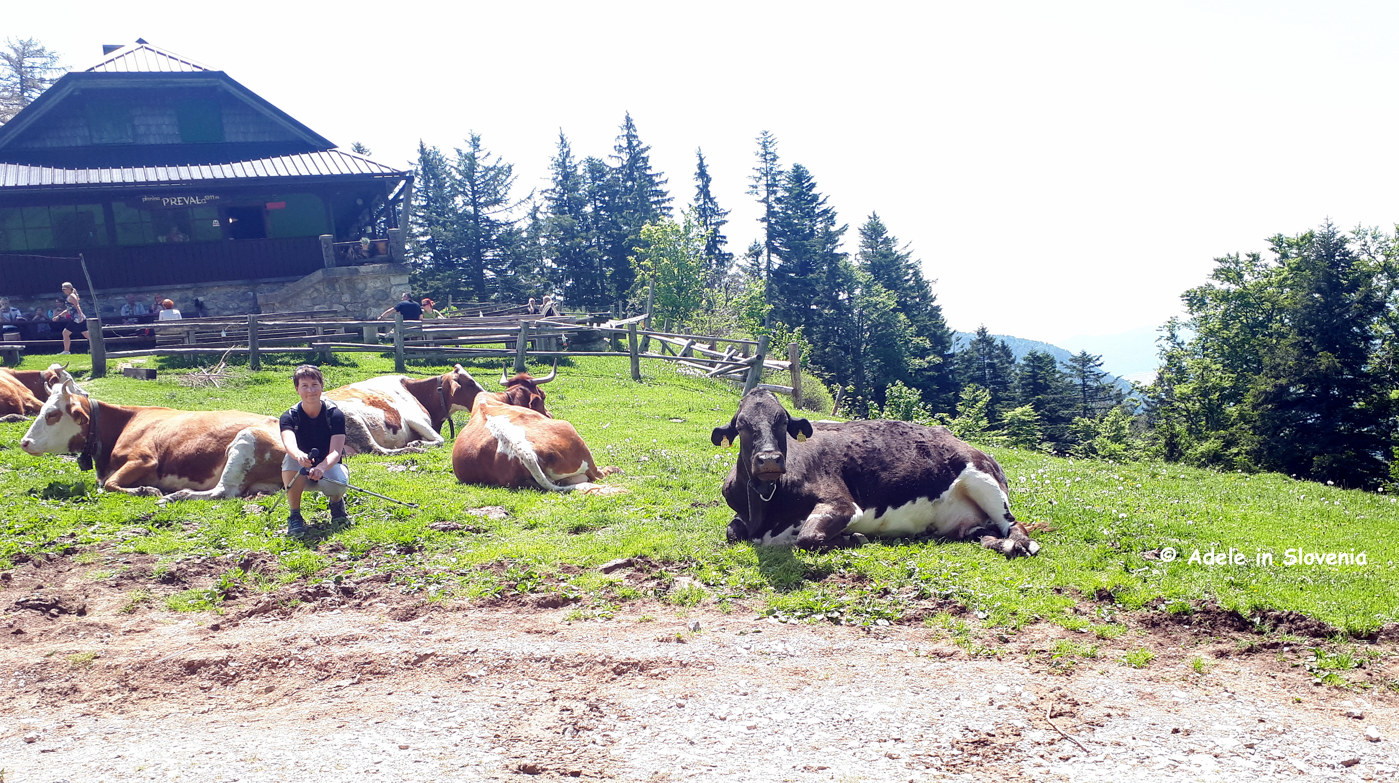 The trail leads to the Preval mountain pasture at an altitude of 1,311 metres, where you can stop for a rest and refreshments at the Koča na Prevalu mountain hut.