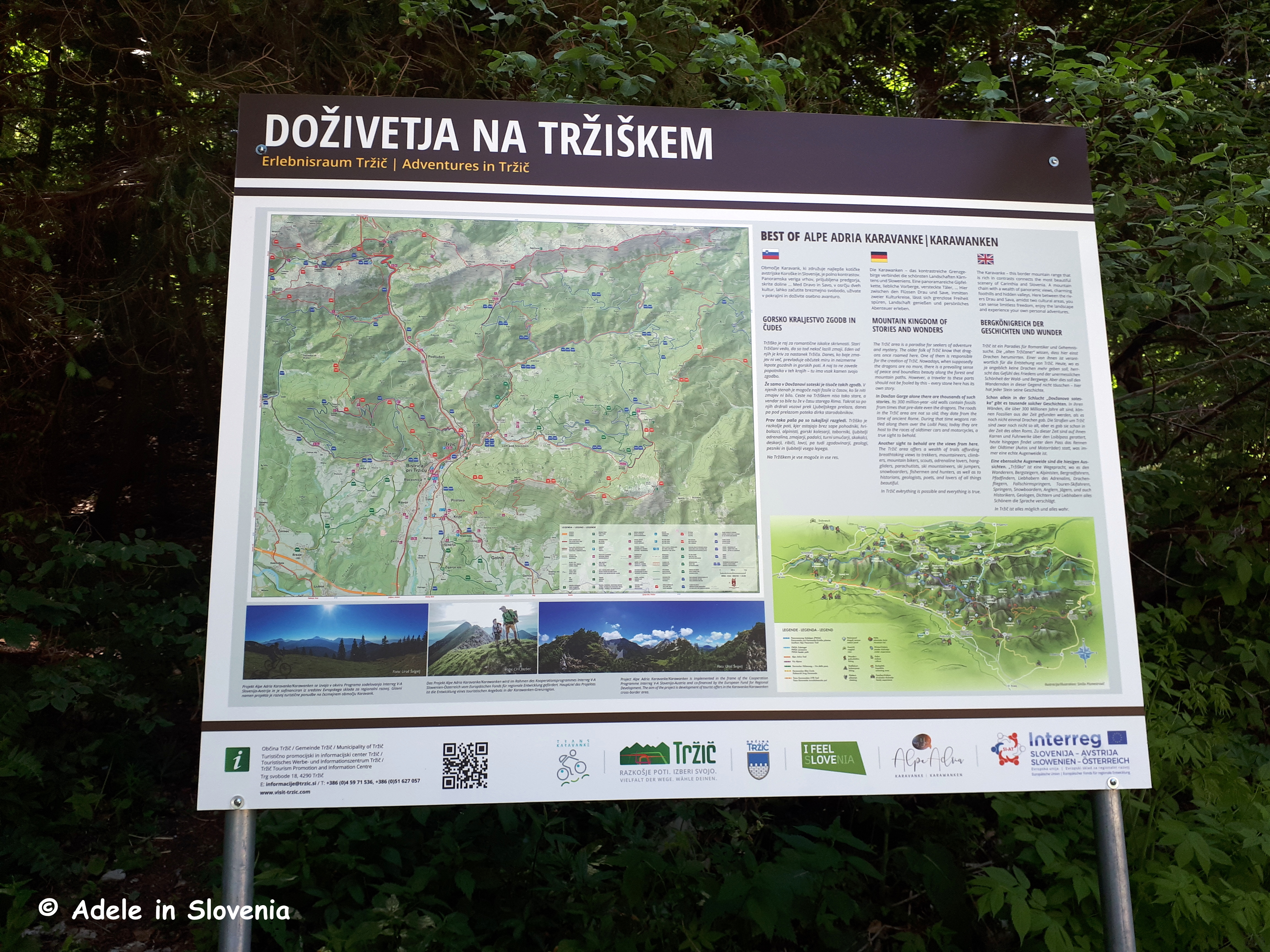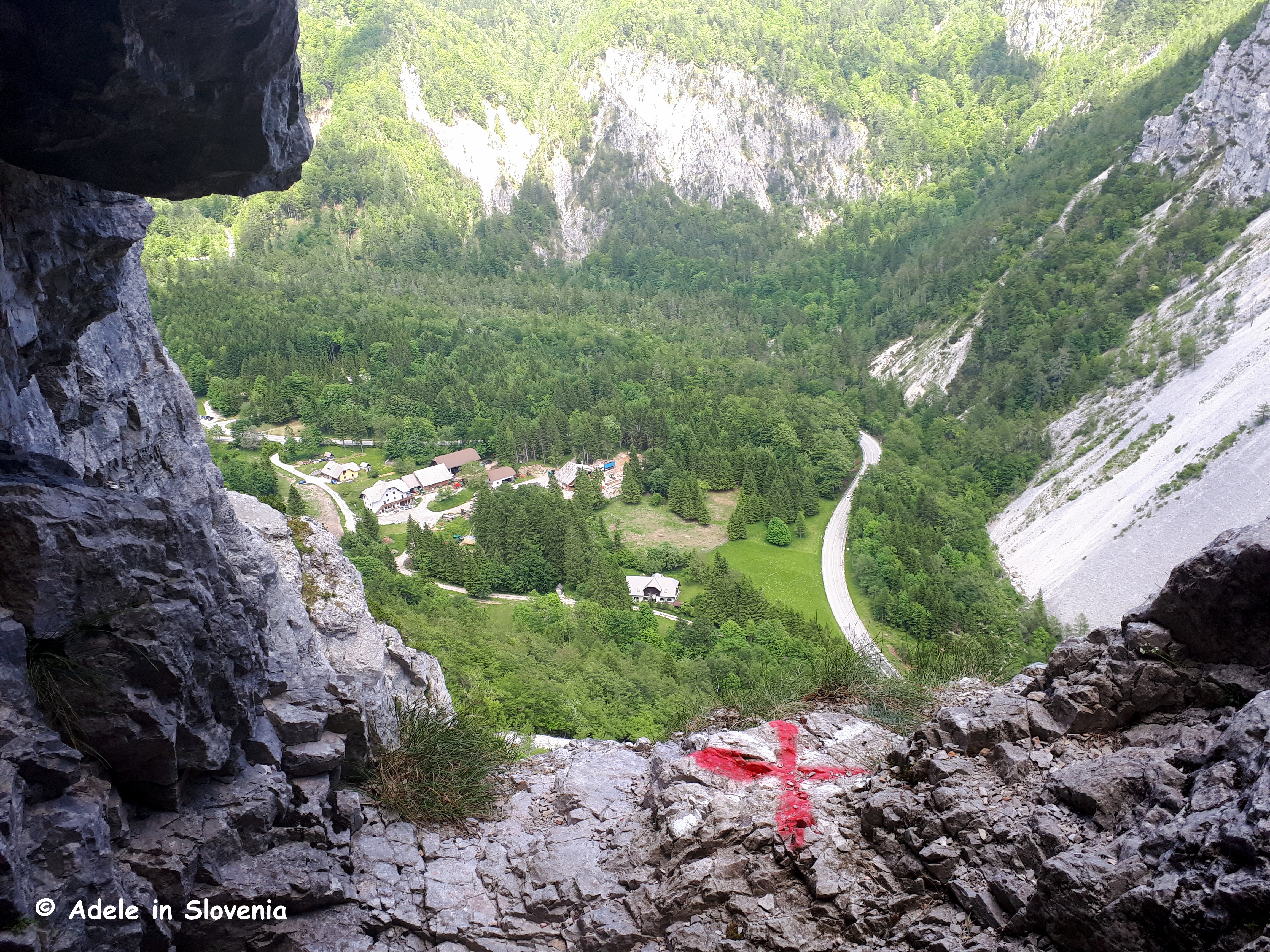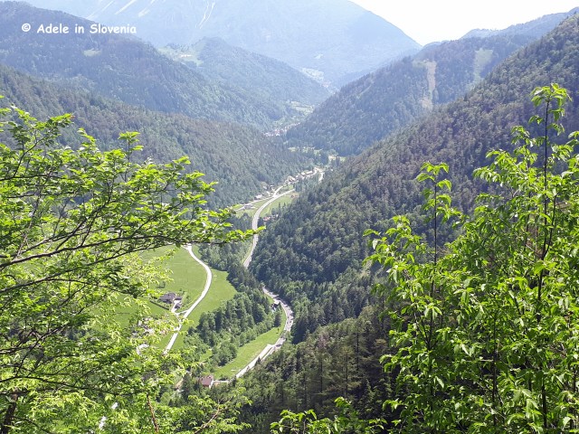About halfway along the trail, shortly after leaving the tunnel – as well as in one place in the middle of the tunnel – there are wonderful views of St. Ana valley towards Tržič and the surrounding hills and mountains.