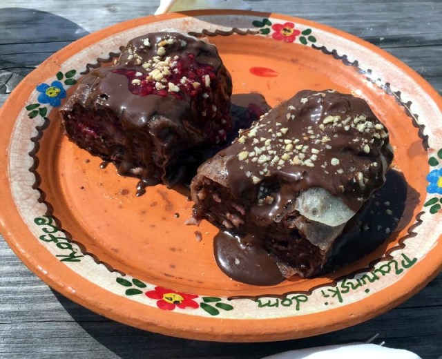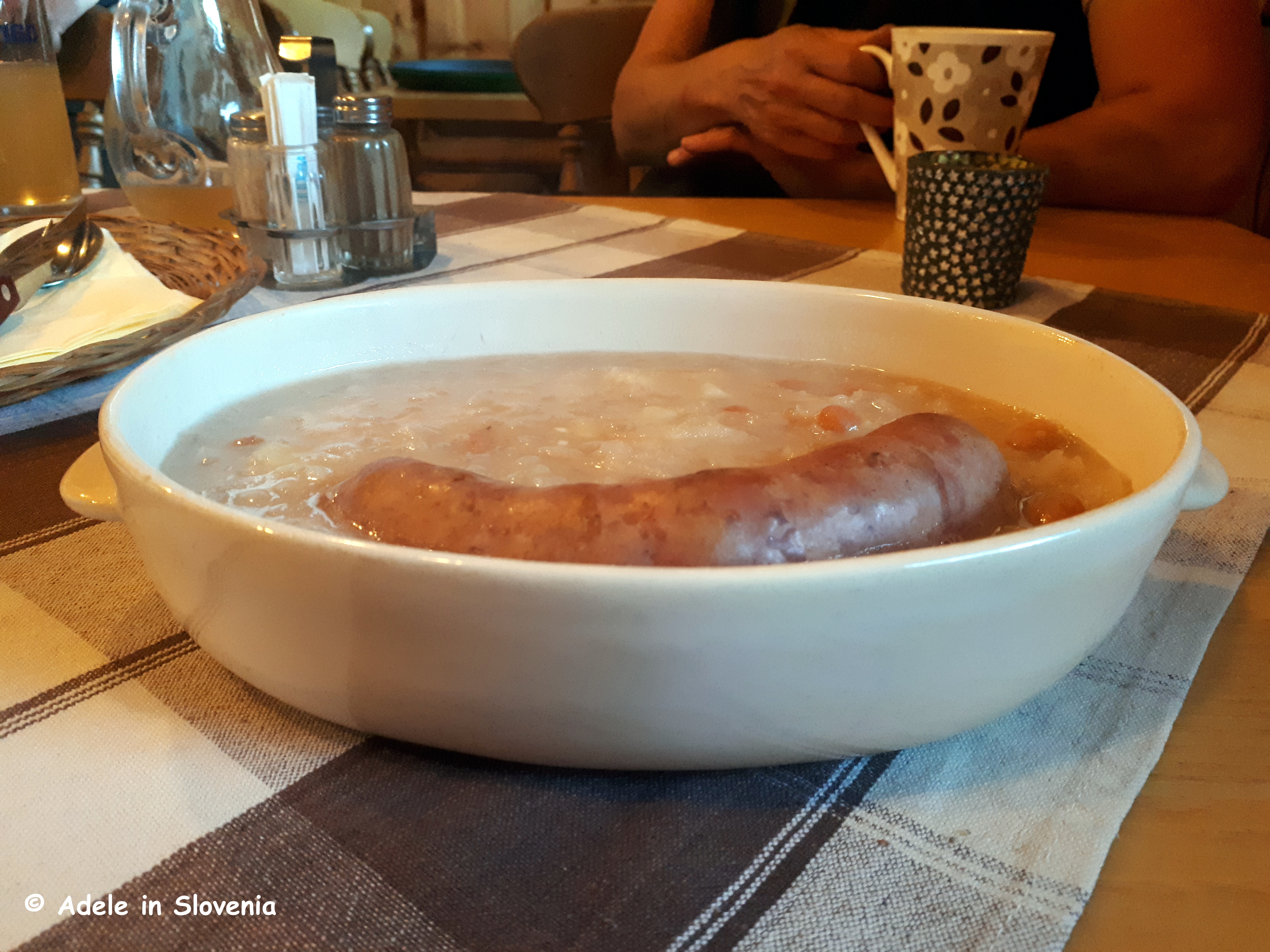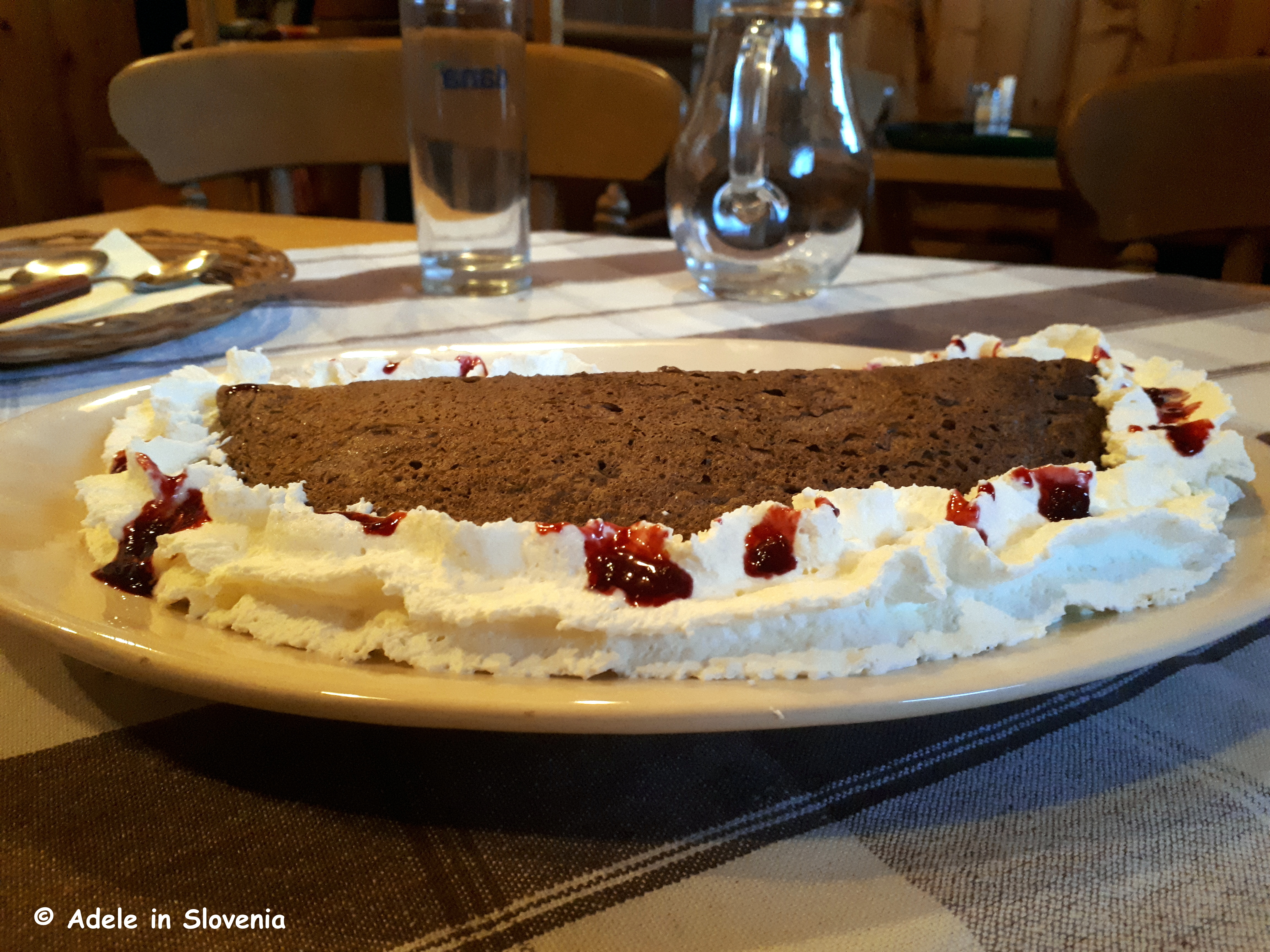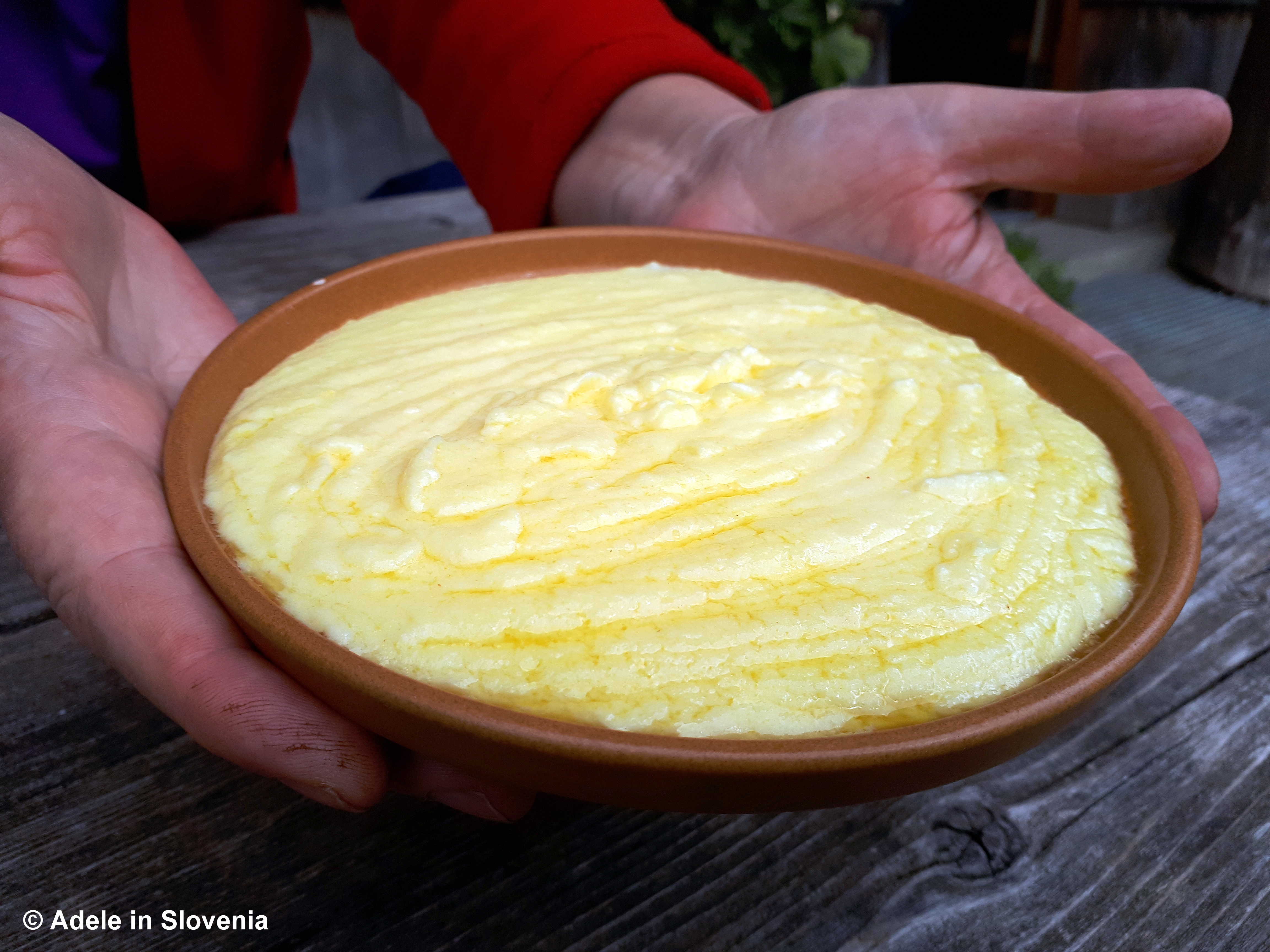 On reaching Dolga njiva, you can try some really typical mountain food, such as masovnik – a hearty mixture of flour and sour cream. Unfortunately I wasn’t able to try it (coeliac disease and wheat flour = a big NO!), so I asked one of the hikers if I could take a photo of her food before she tucked in!