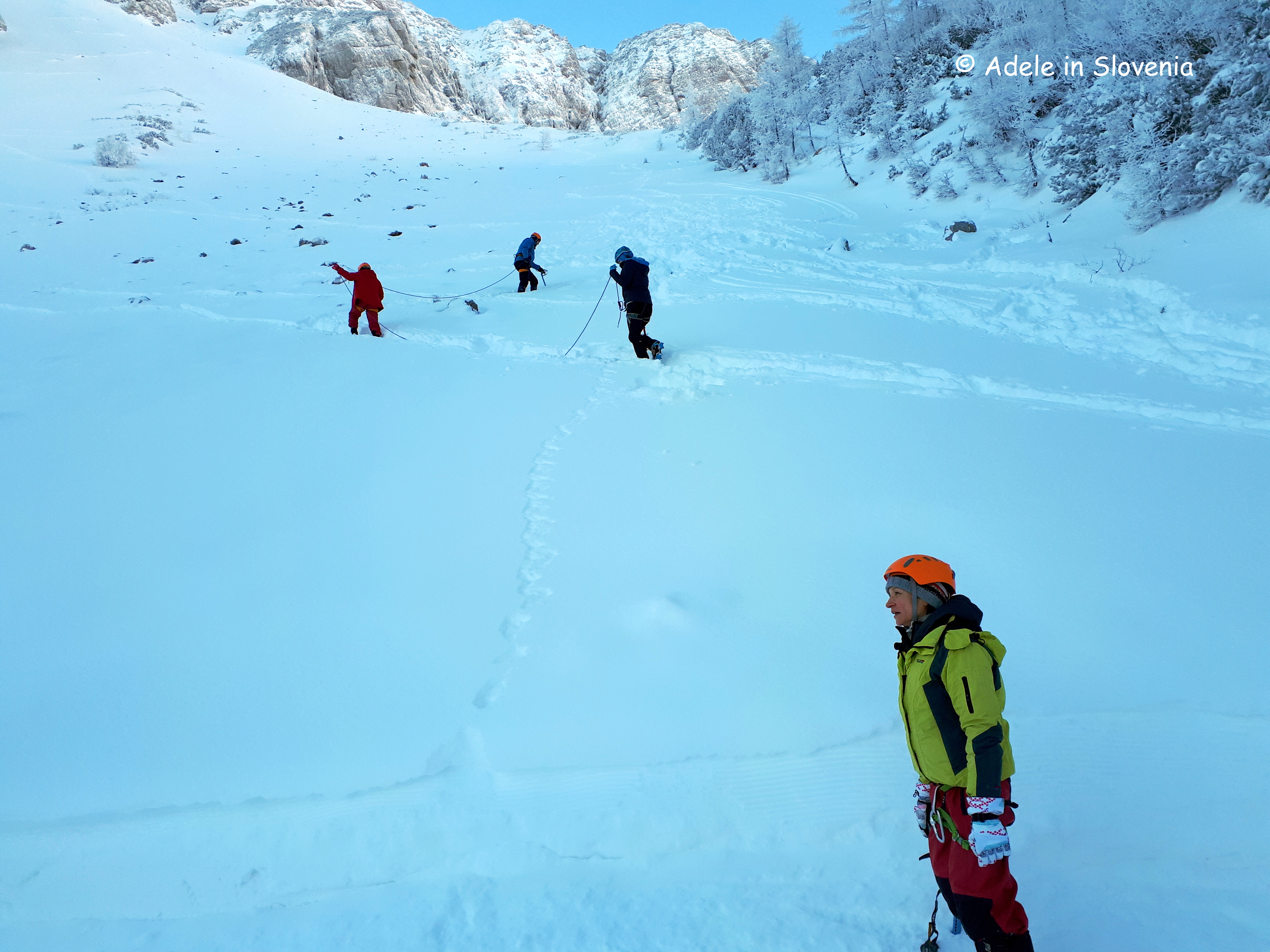 Despite no longer being an ‘active’ ski piste, Zelenica was very much ‘alive’ on Sunday with hikers, ski tourers, snowboarders, a mountain rescue team practicing winter mountaineering skills, sledgers, and I even saw one guy carrying a bike on his shoulder up the snow-covered ski piste!
